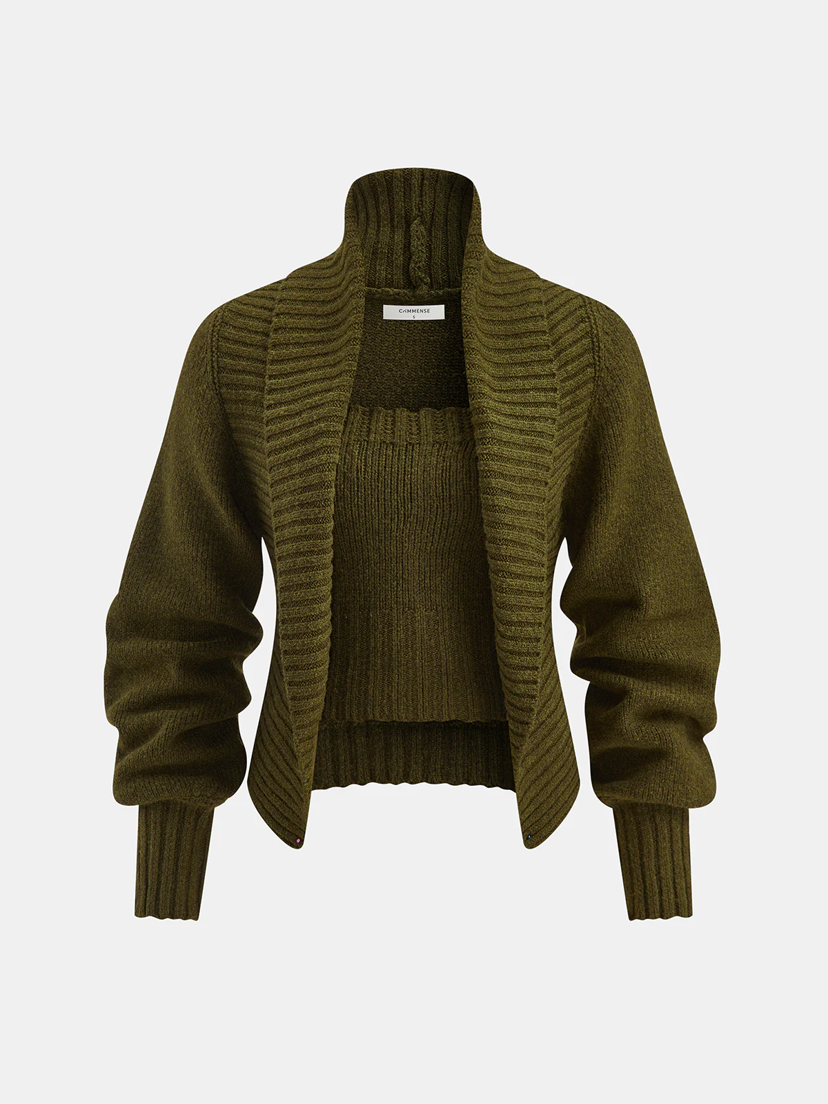 Leg-Of-Mutton Sleeve Heart-Button Wool Blend Cardigan