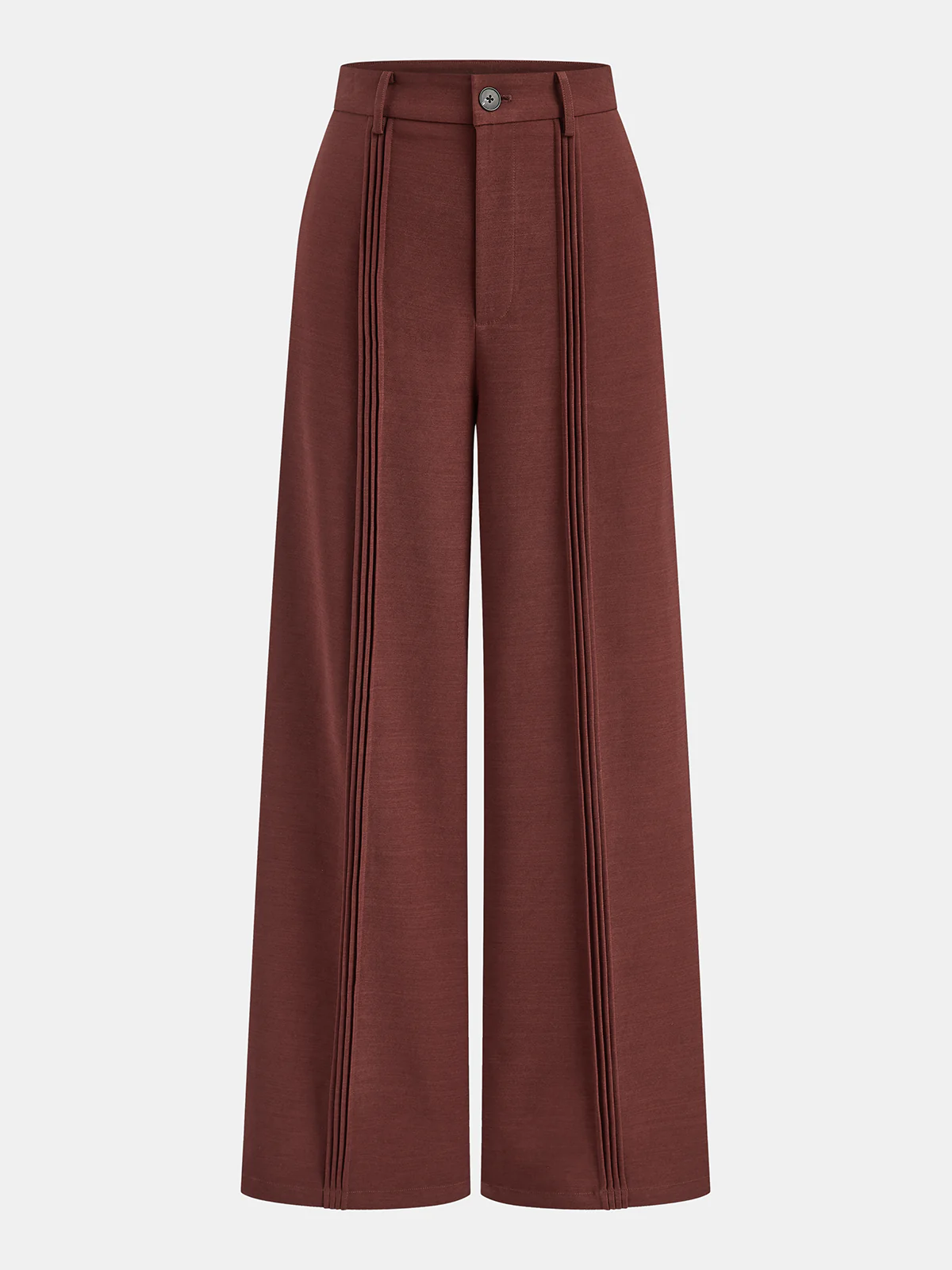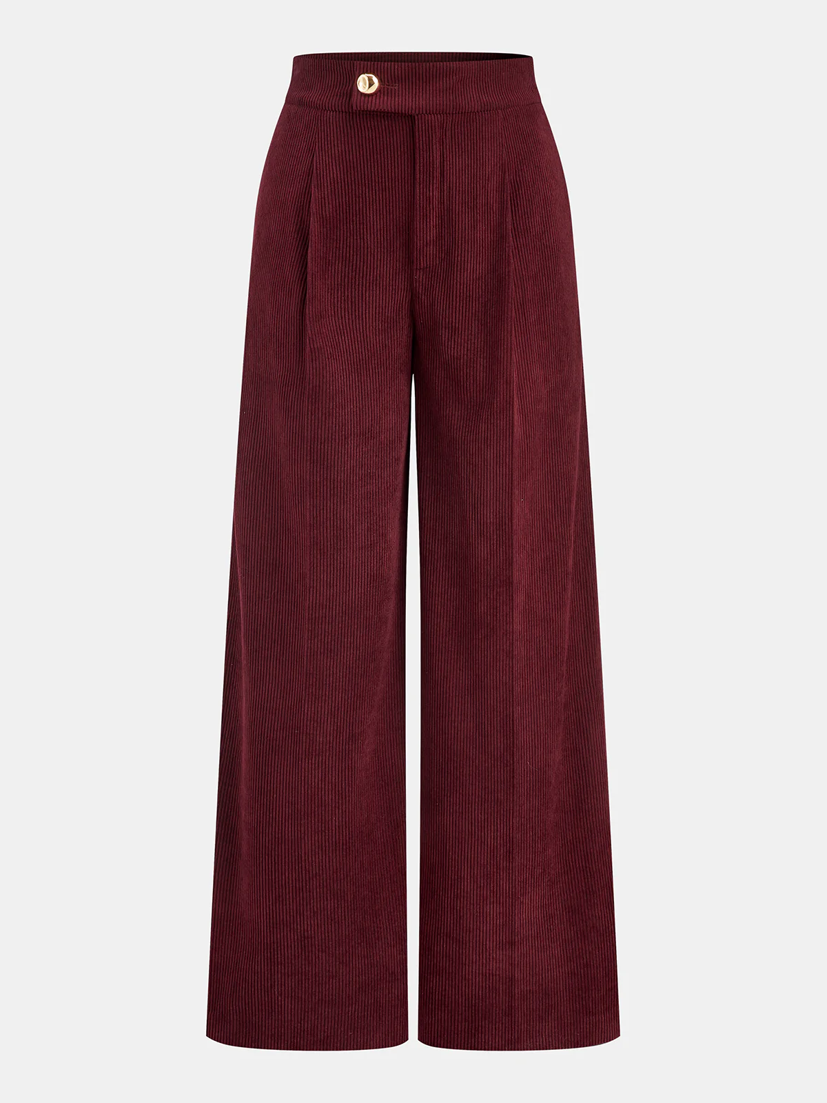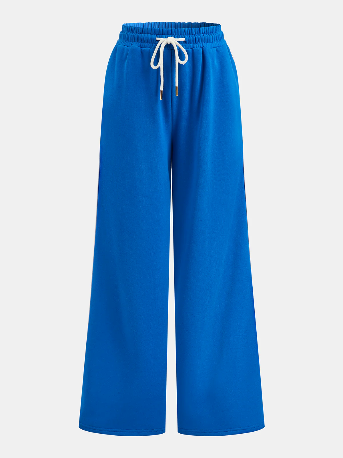 Mid-Waist Corduroy Wide-Leg Drawstring Pants