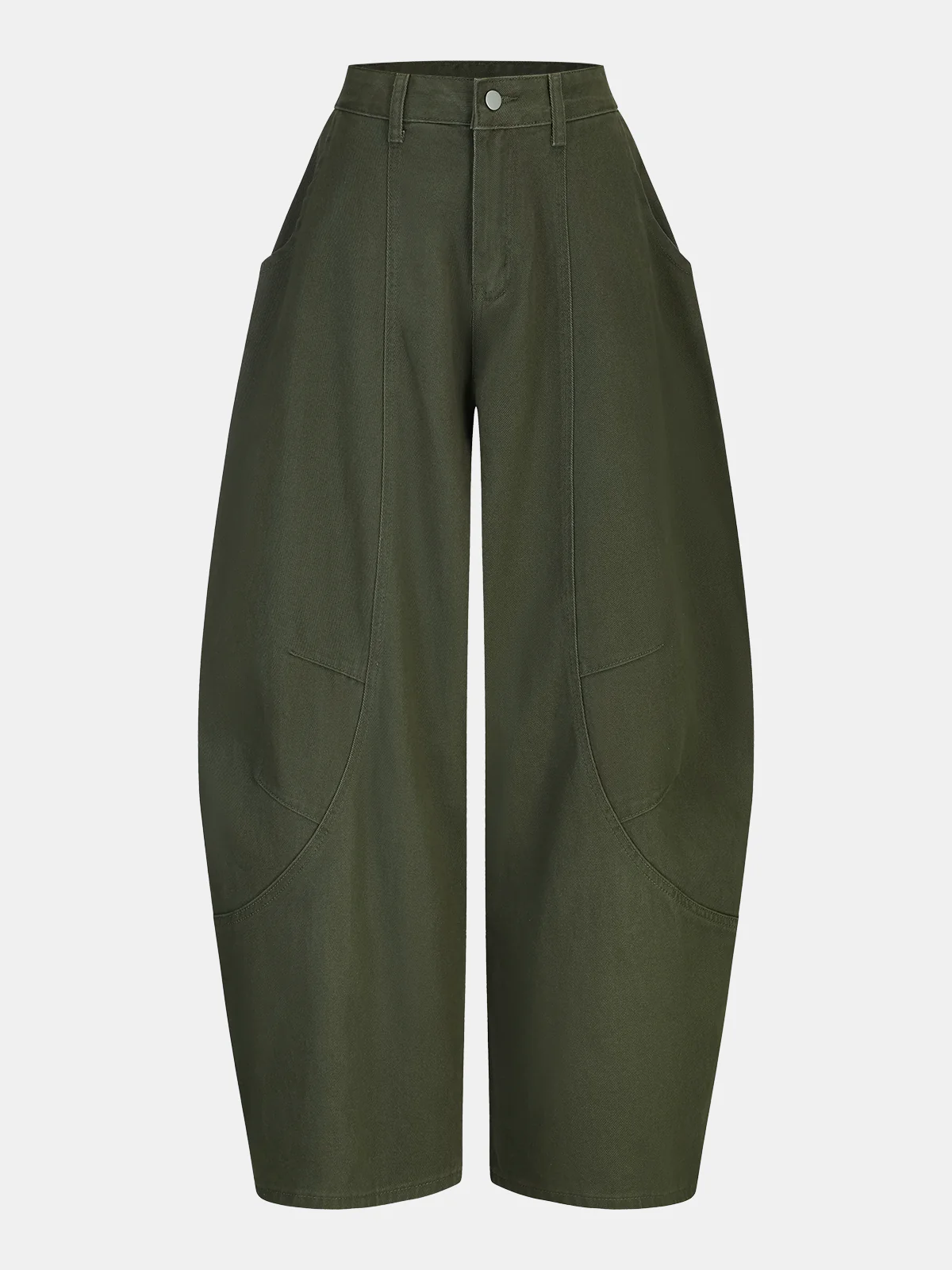 Mid-Waisted Faux Leather Curved-Leg Pants