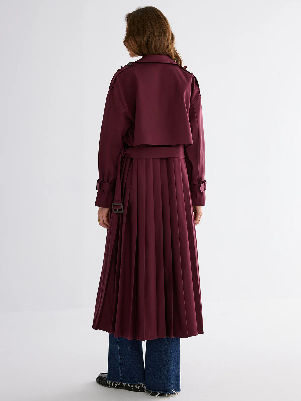 Pleated Hem Belted Trench Coat