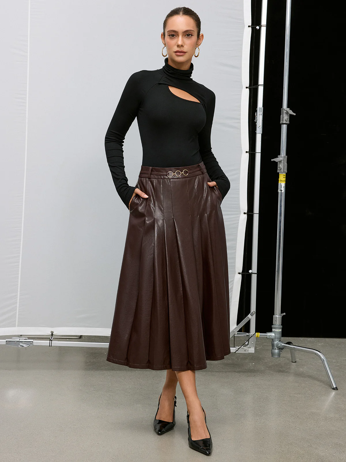 Pleated Faux Leather Maxi Skirt