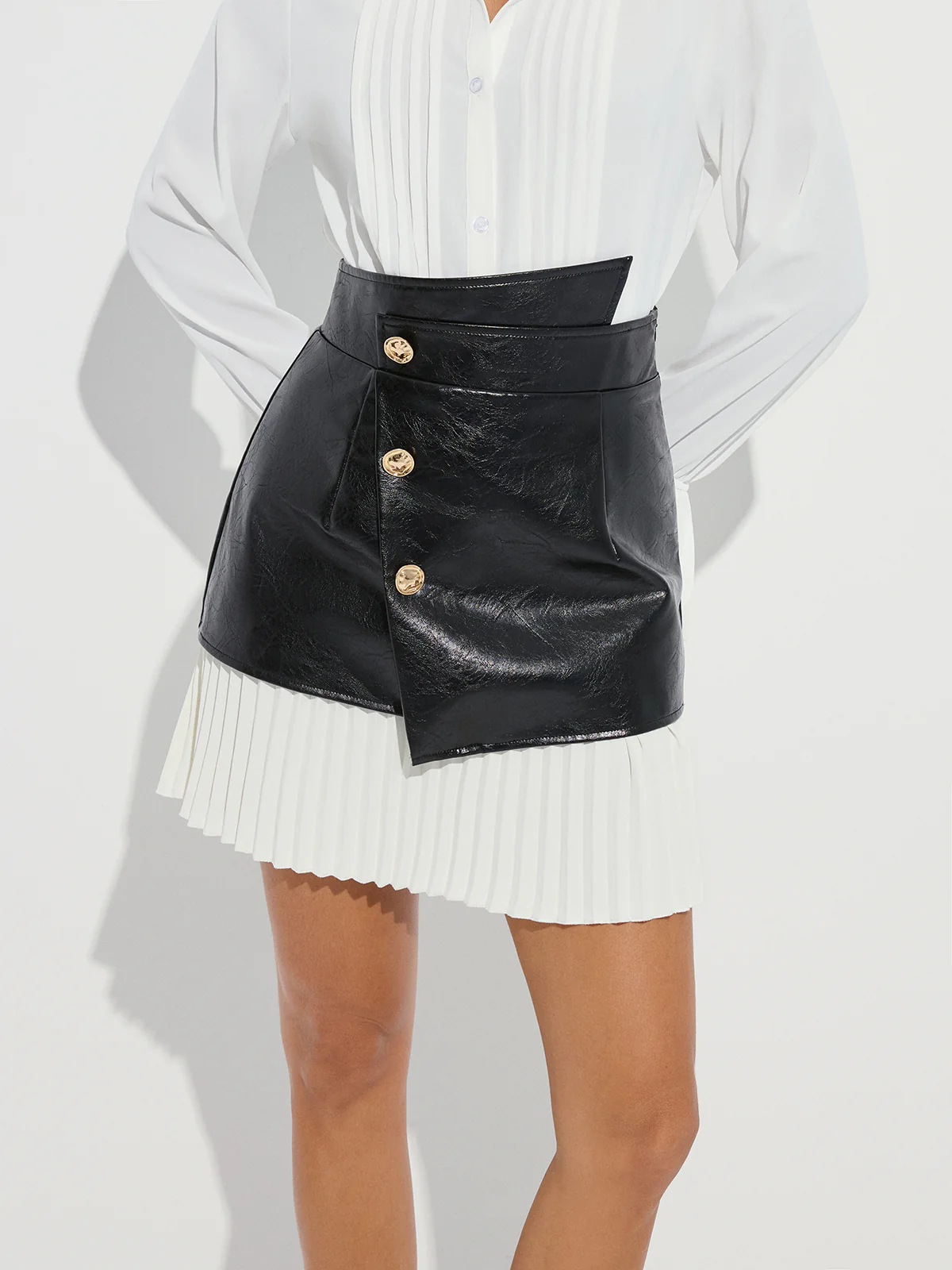 Pleated Panel Faux Leather Asymmetric Mini Skirt