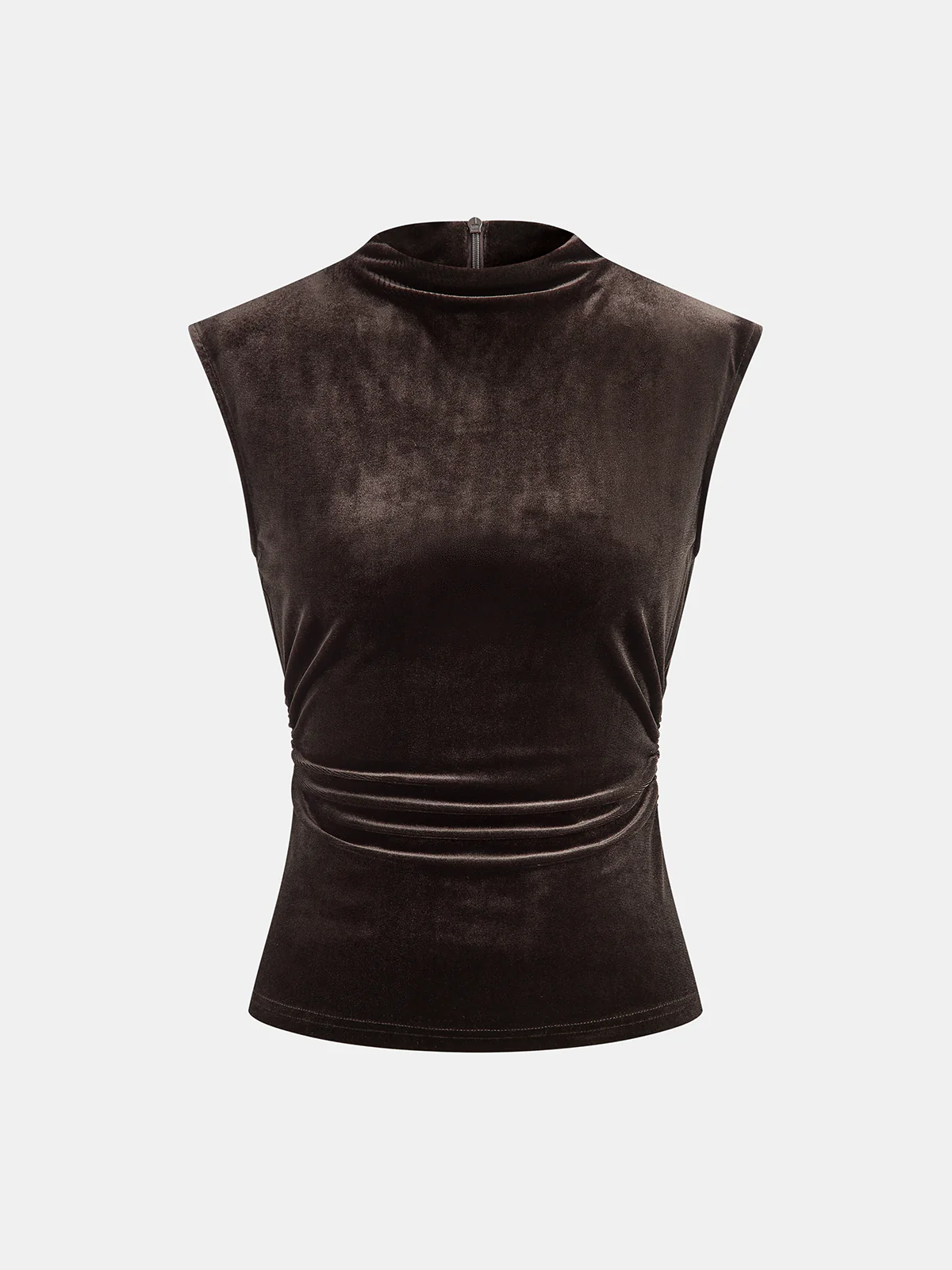 Mock Neck Contrast Sleeve Ribbed Knit Top