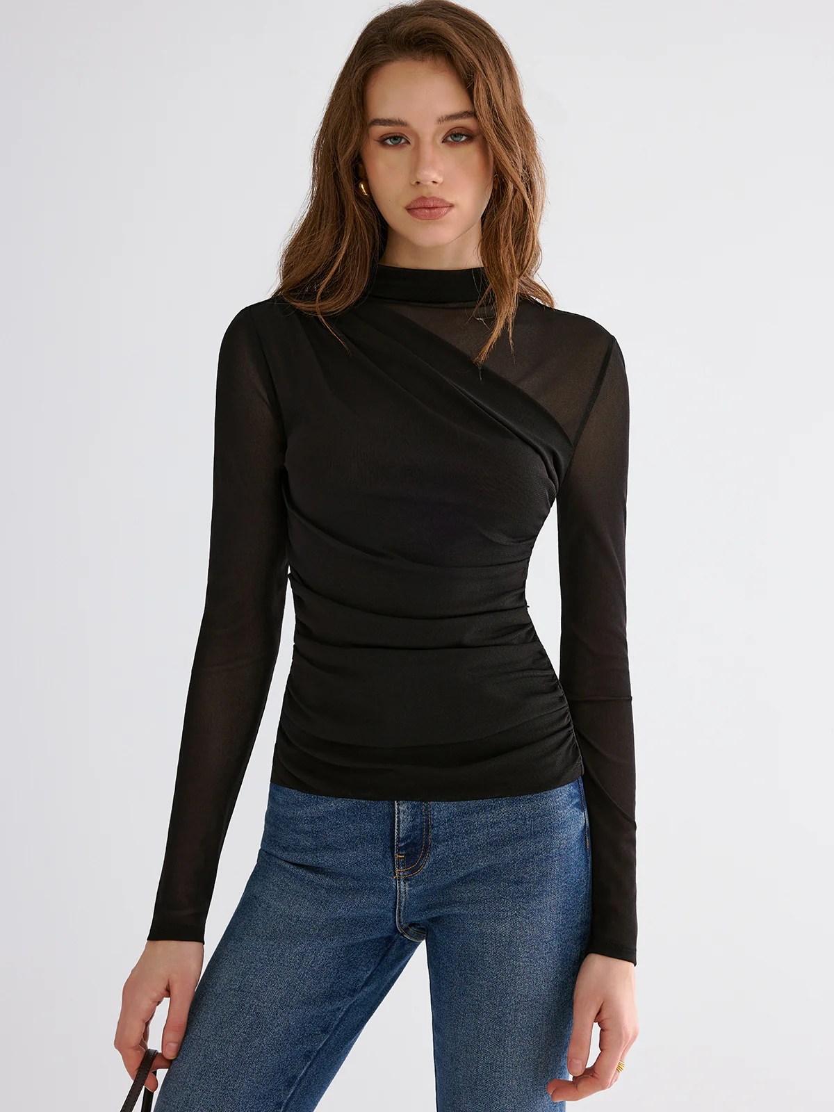 Long-Sleeve Twist Mock Neck Top