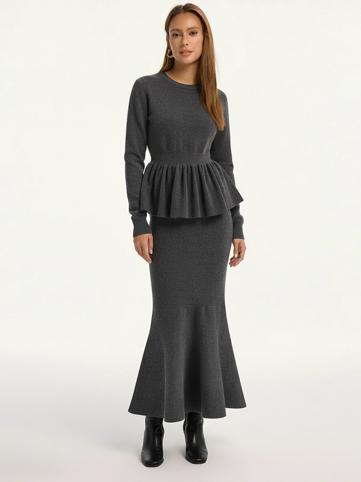 Long-Sleeve Peplum Hem Knit Top