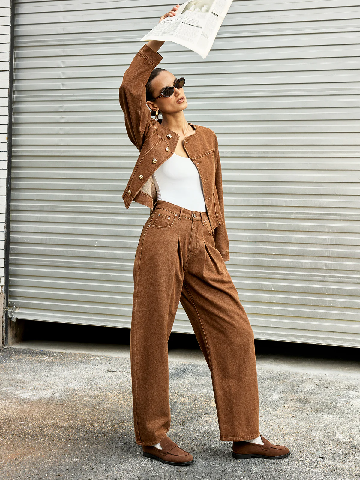 Metal Button Asymmetric Denim Jacket