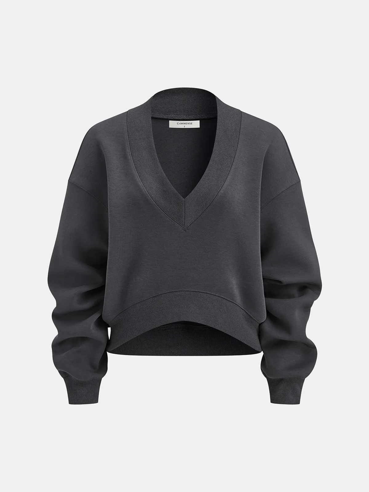 Long Sleeve V-Neck Cropped Sweatshirt