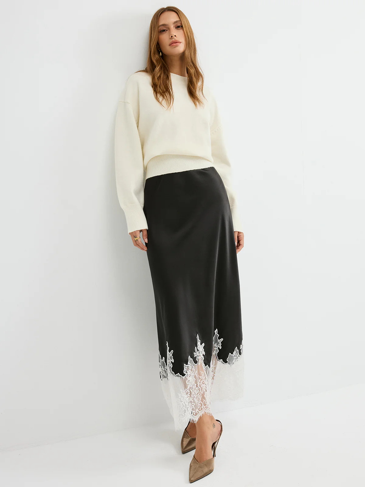 Lace Trim Knit Sweater and Maxi Skirt Set