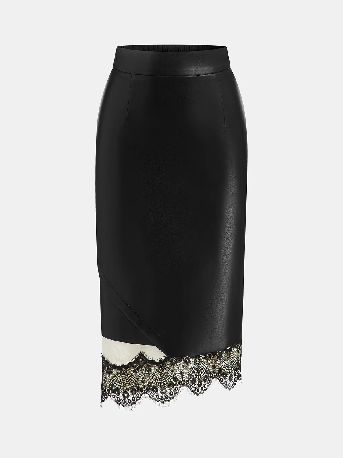 Lace Trim Faux Leather Skirt Set with Removable Straps