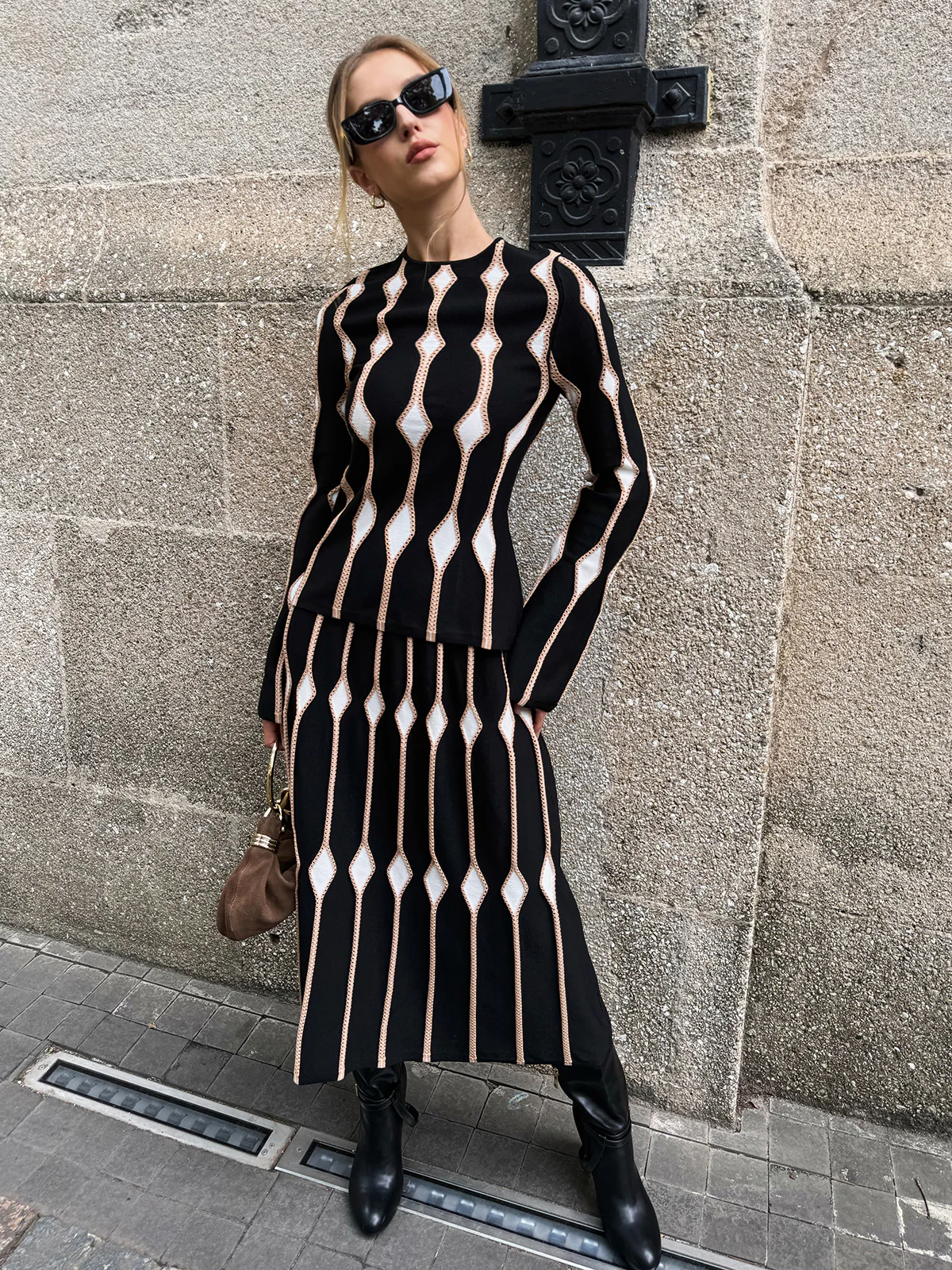 Fringe Hem Cable-Knit Turtleneck Sweater