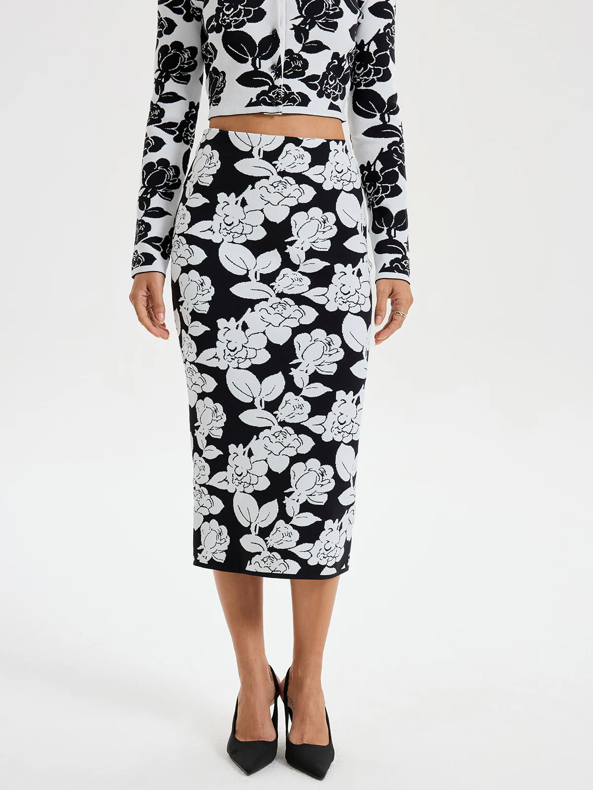 Floral Pattern Mock Neck Balloon Sleeve Sweater