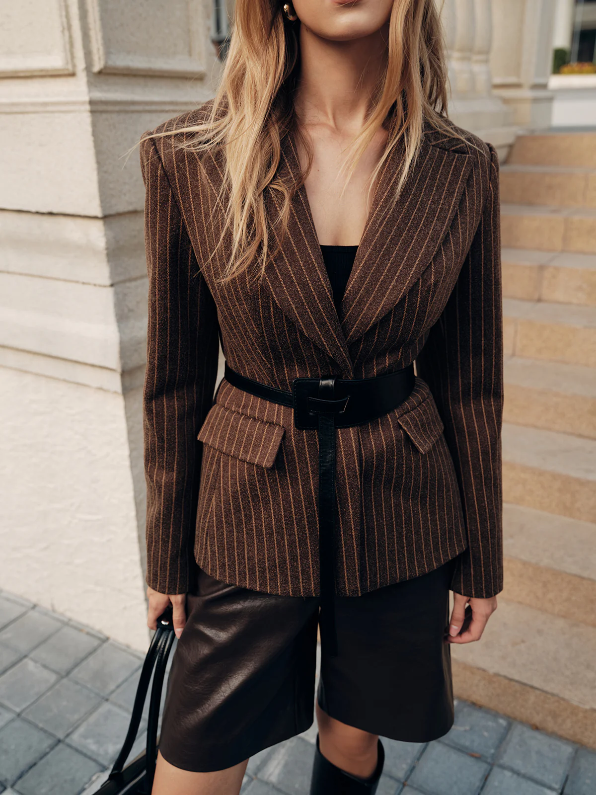 Belted Striped Tweed Blazers