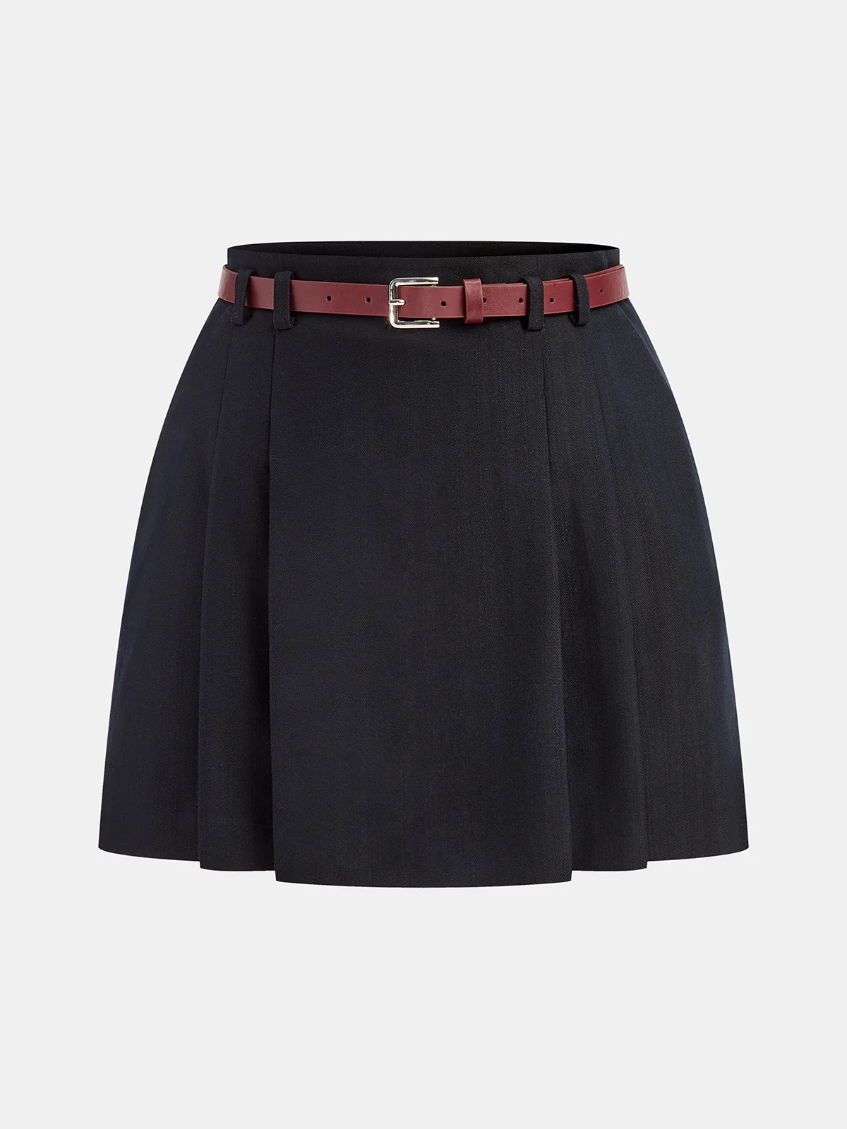 Belted Pleated Mini Skirt