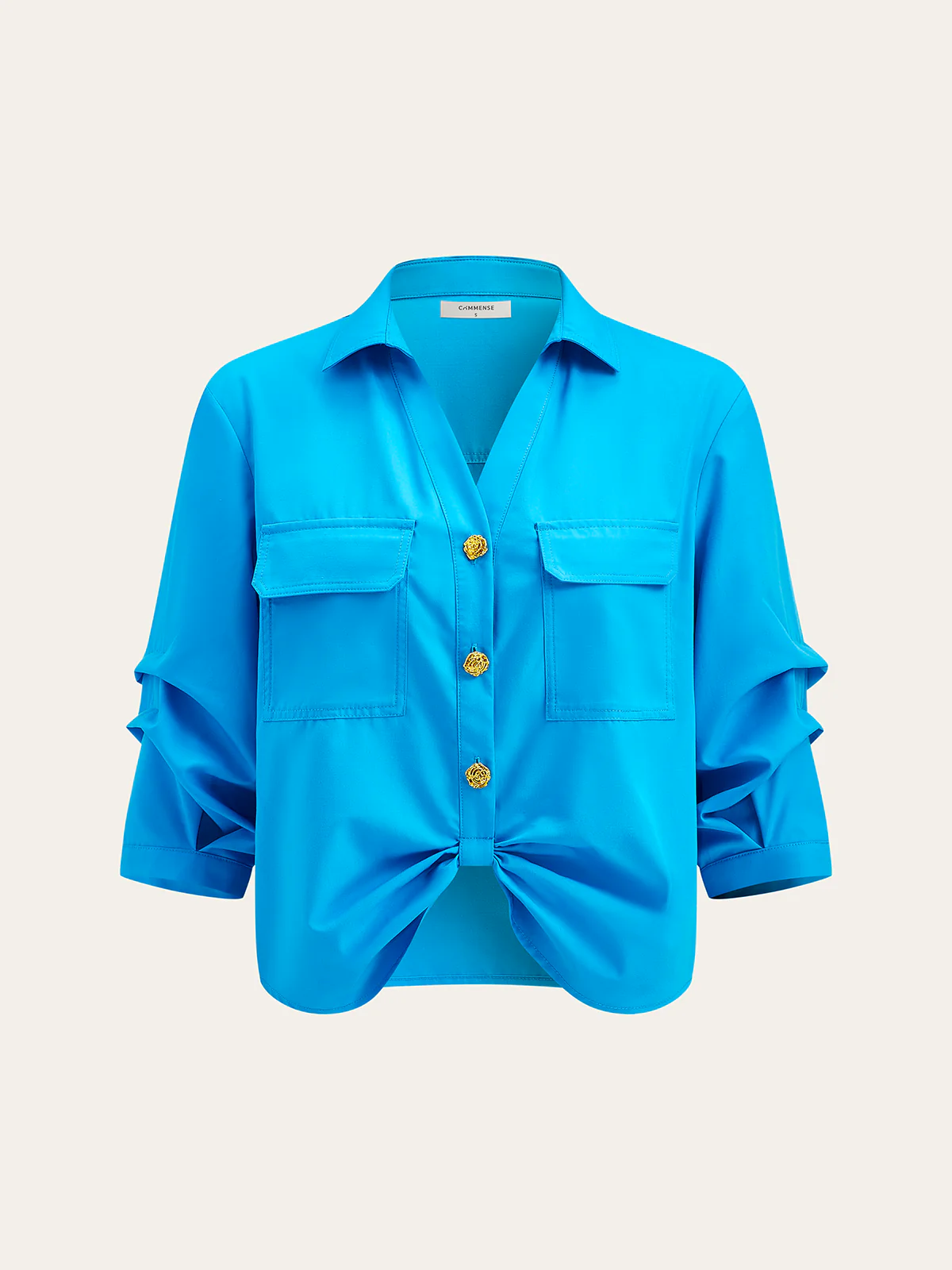 Semi-Sheer Ruffled V-Neck Bell-Sleeve Top