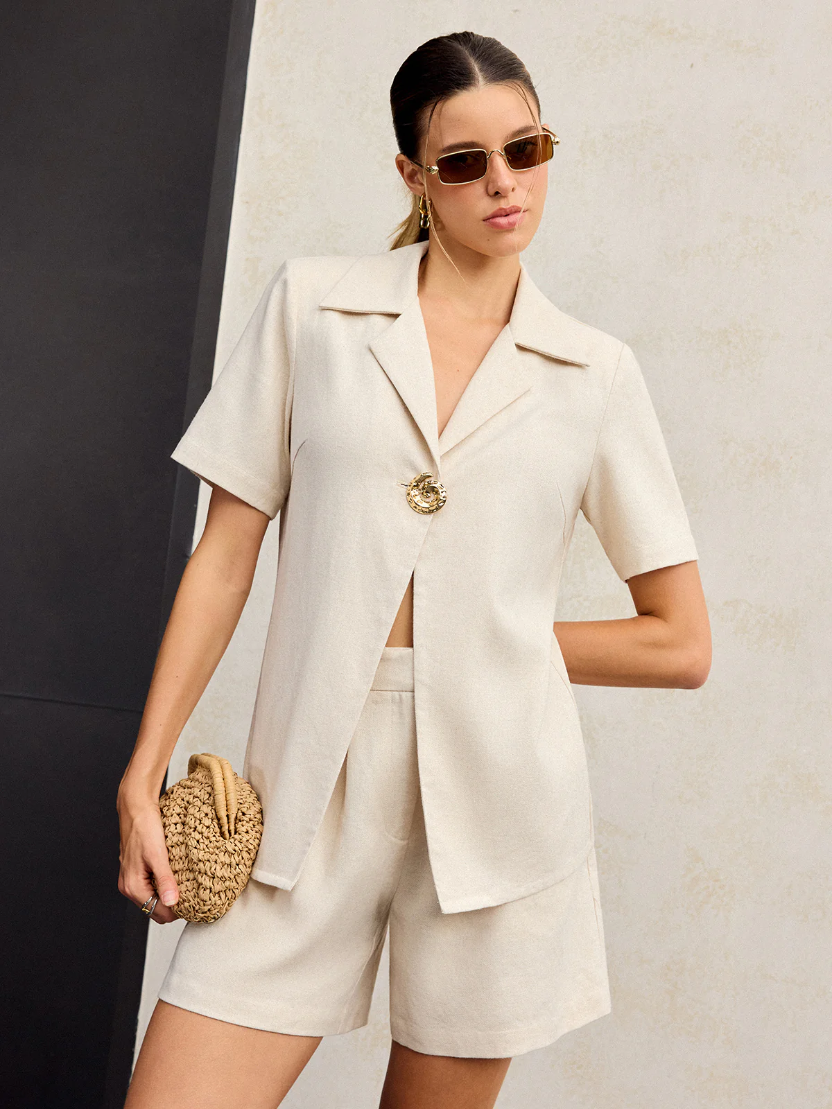 Cotton & Linen Metal Decor Shorts Set