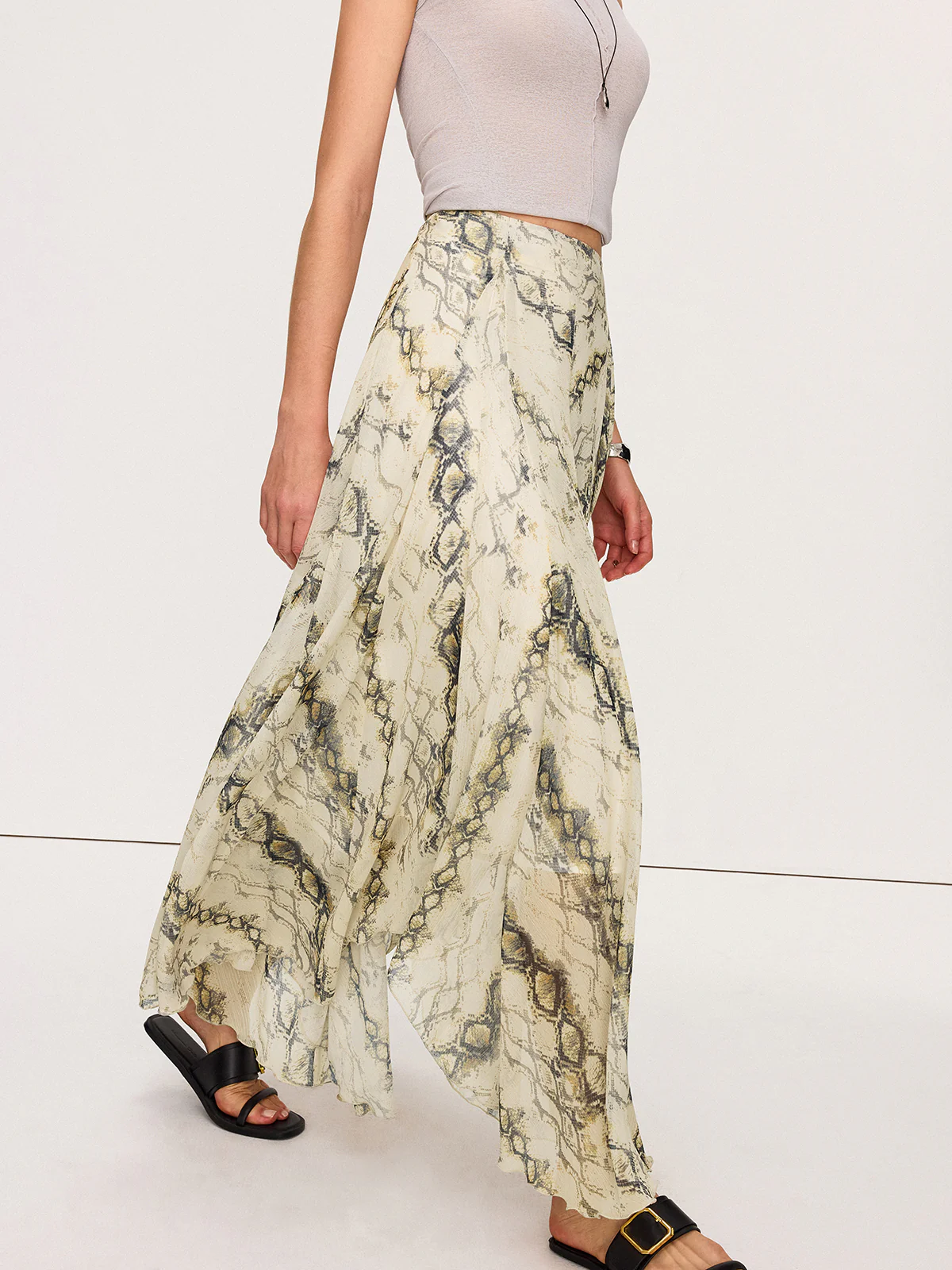Semi-Sheer Snake Print Flowy Maxi Skirt