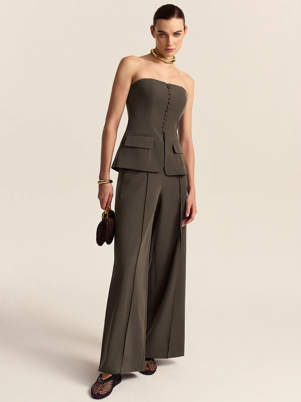 Strapless Top and Wide-Leg Pants Set