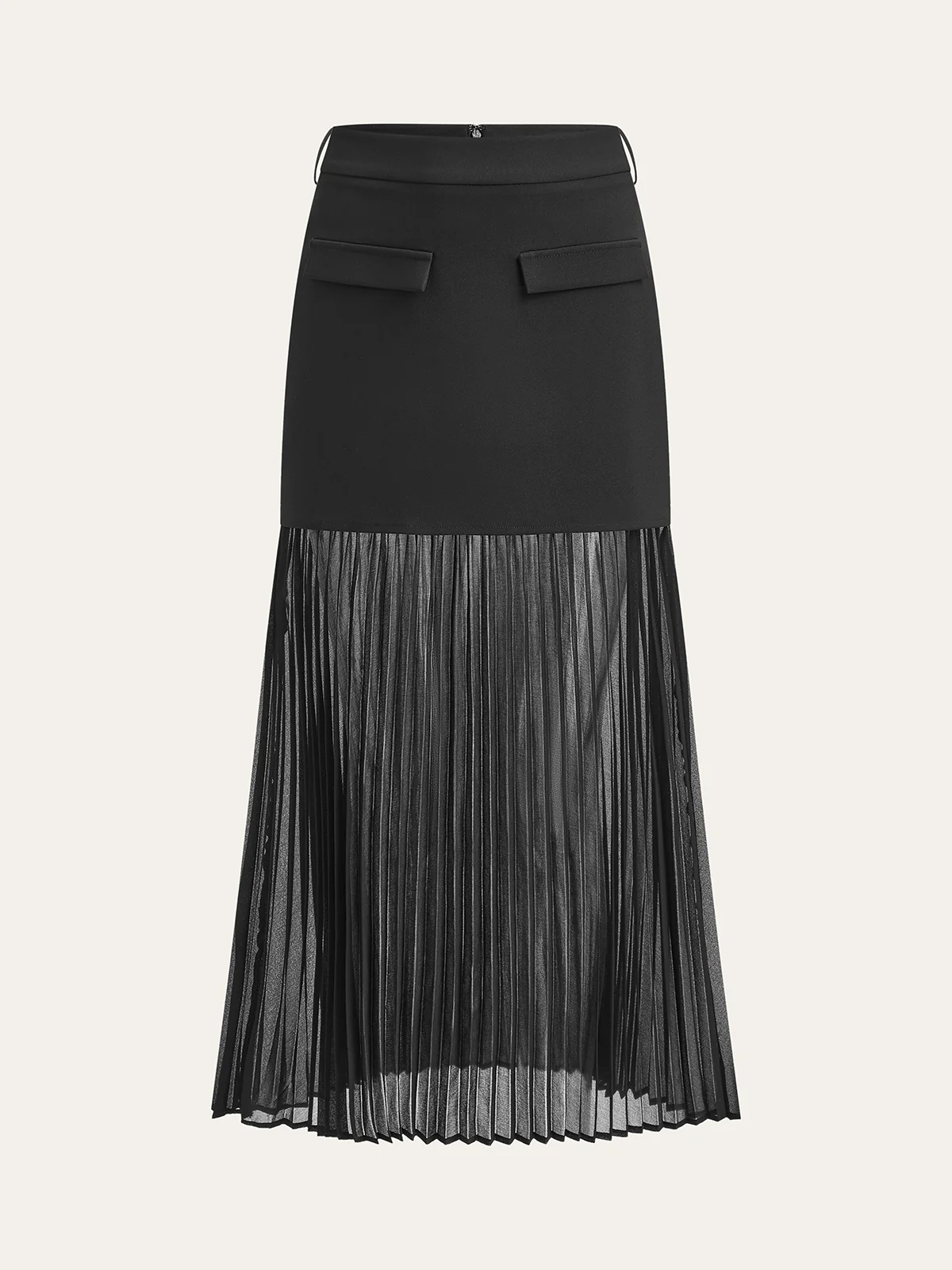 Pleated Mesh Hem Midi Skirt