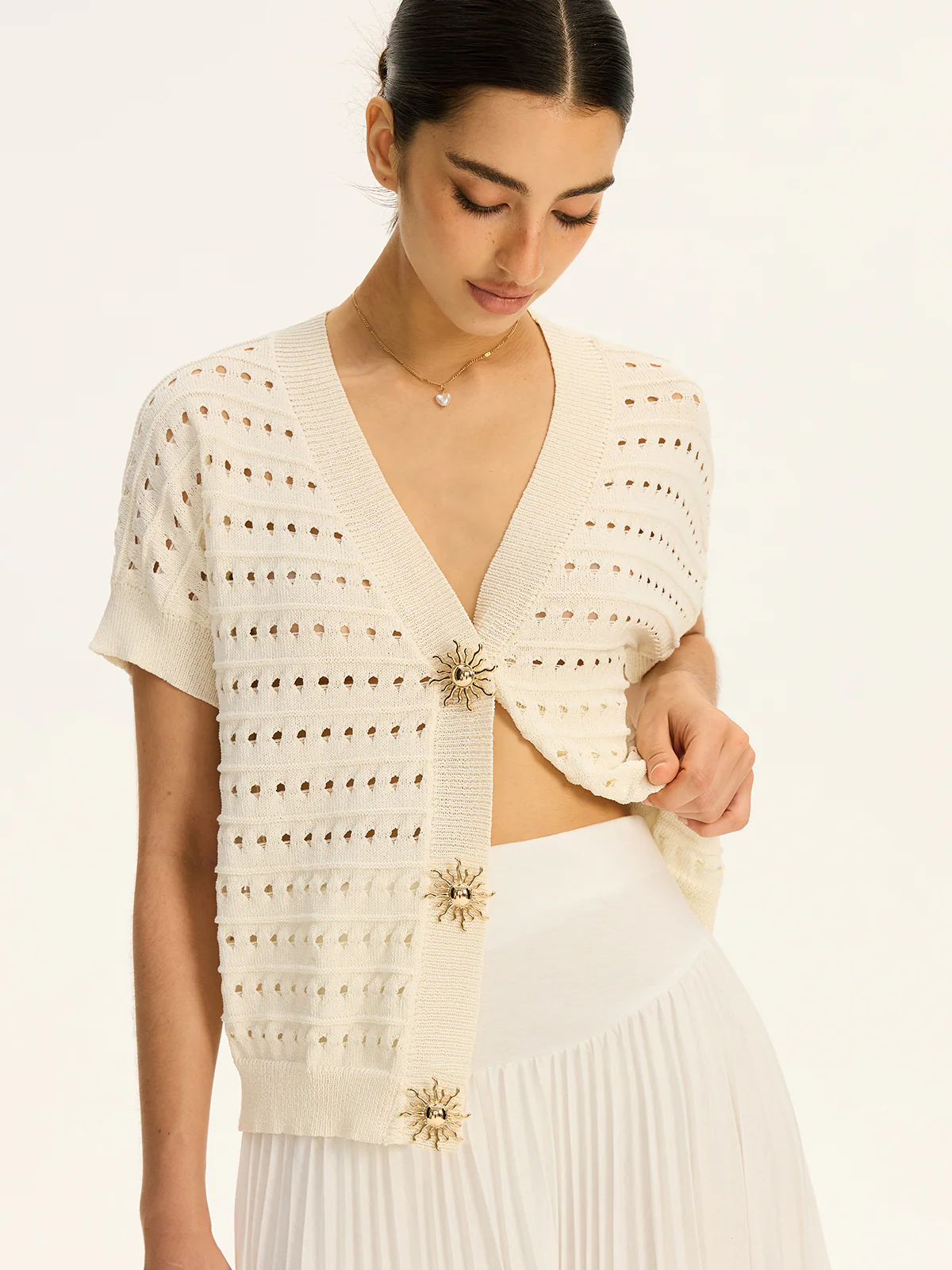 Pleated Wide-Leg Pants with Ankle Button Detail