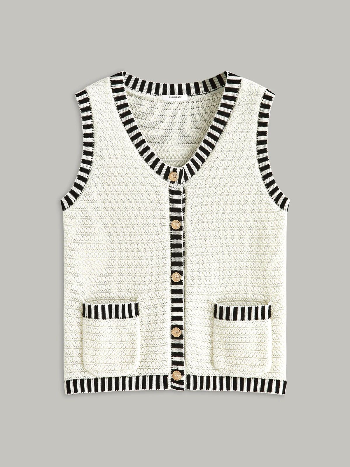 Denim-Collar Buttoned Polo Knit Midi Dress