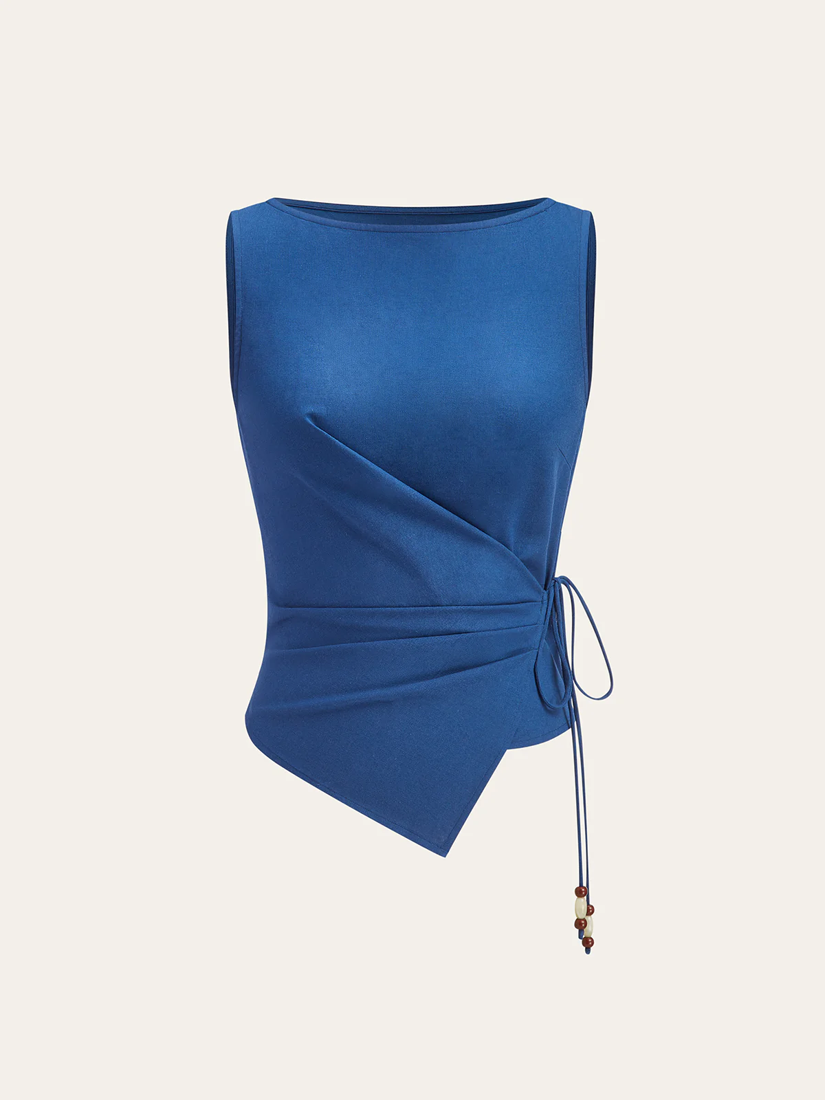 Asymmetric Wrap-Tie Sleeveless Top with Beaded String