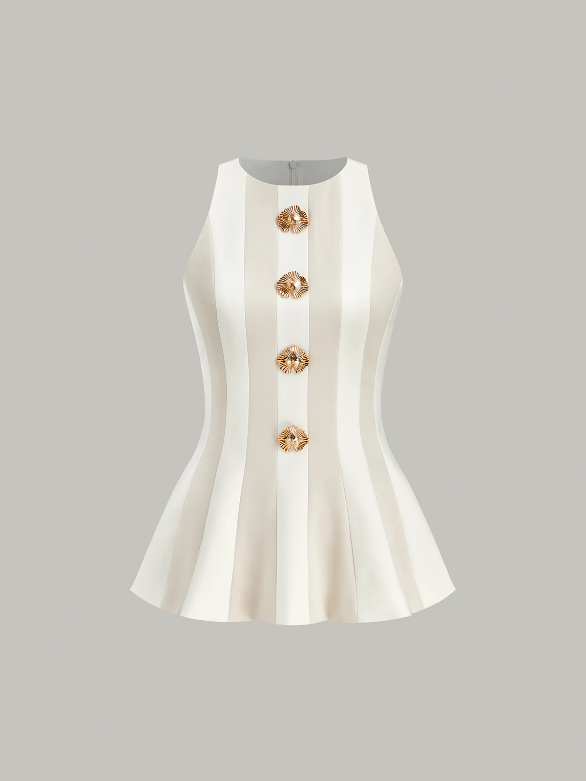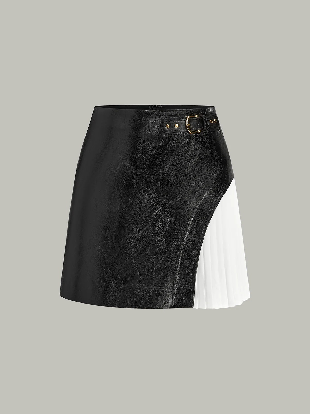 Color-Block Pleated-Panel PU Leather Mini Skirt