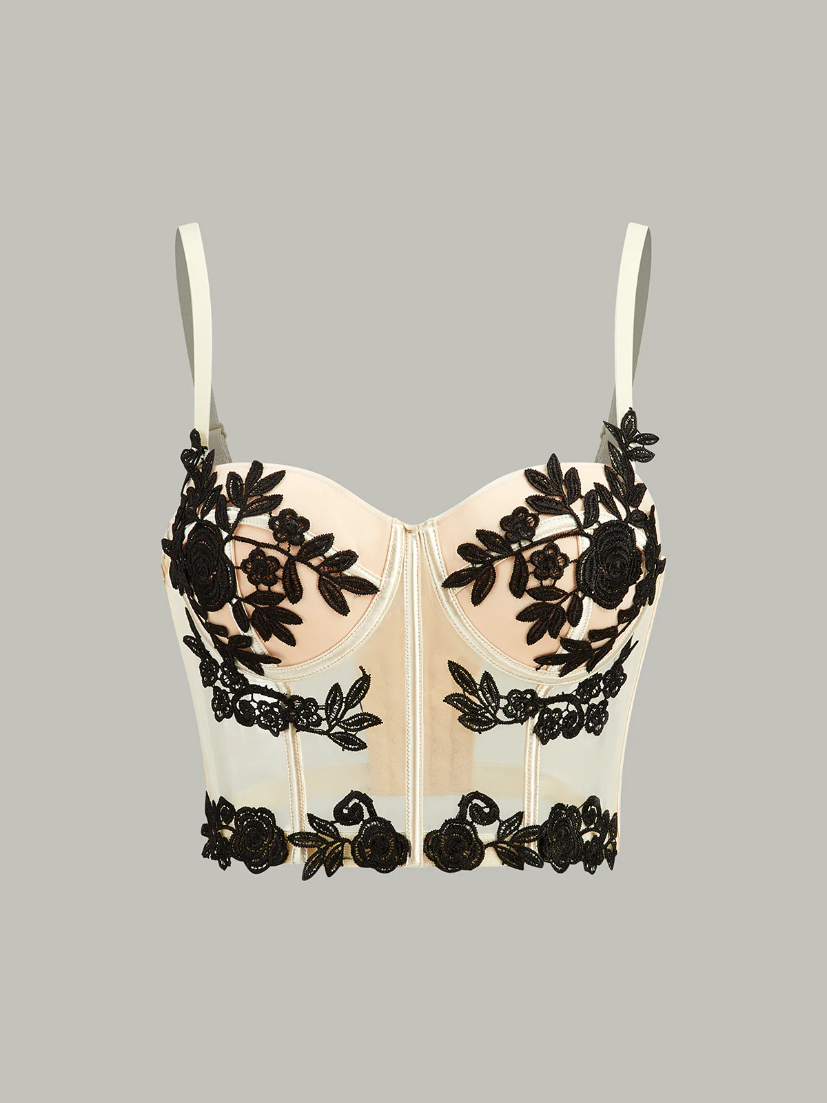 Semi-Sheer Floral Embroidery Mesh Corset Top
