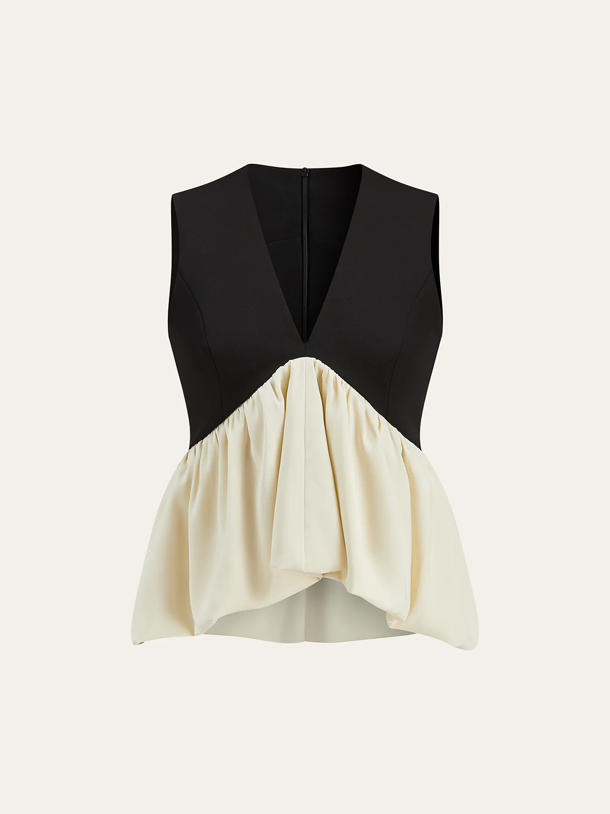 V-Neck Ruffle Hem Contrast Panel Top