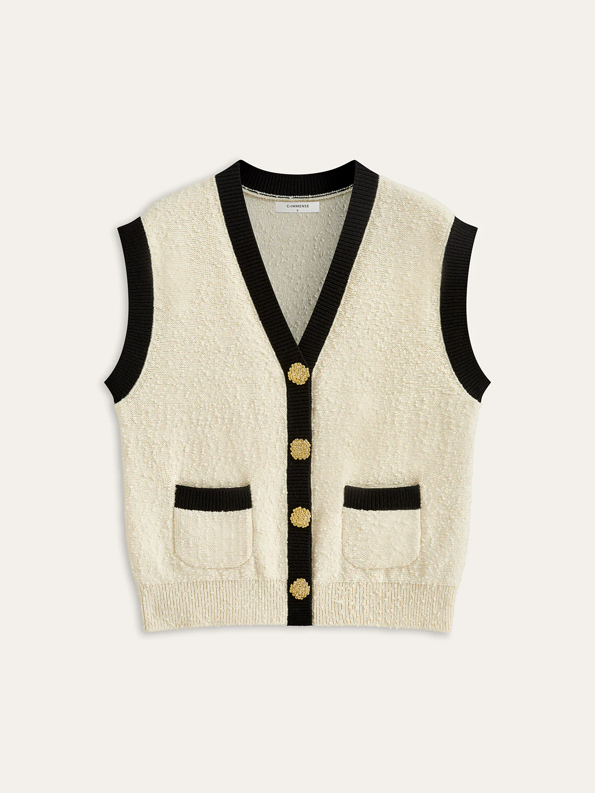Contrast Trim Metal Button Textured Knit Vest