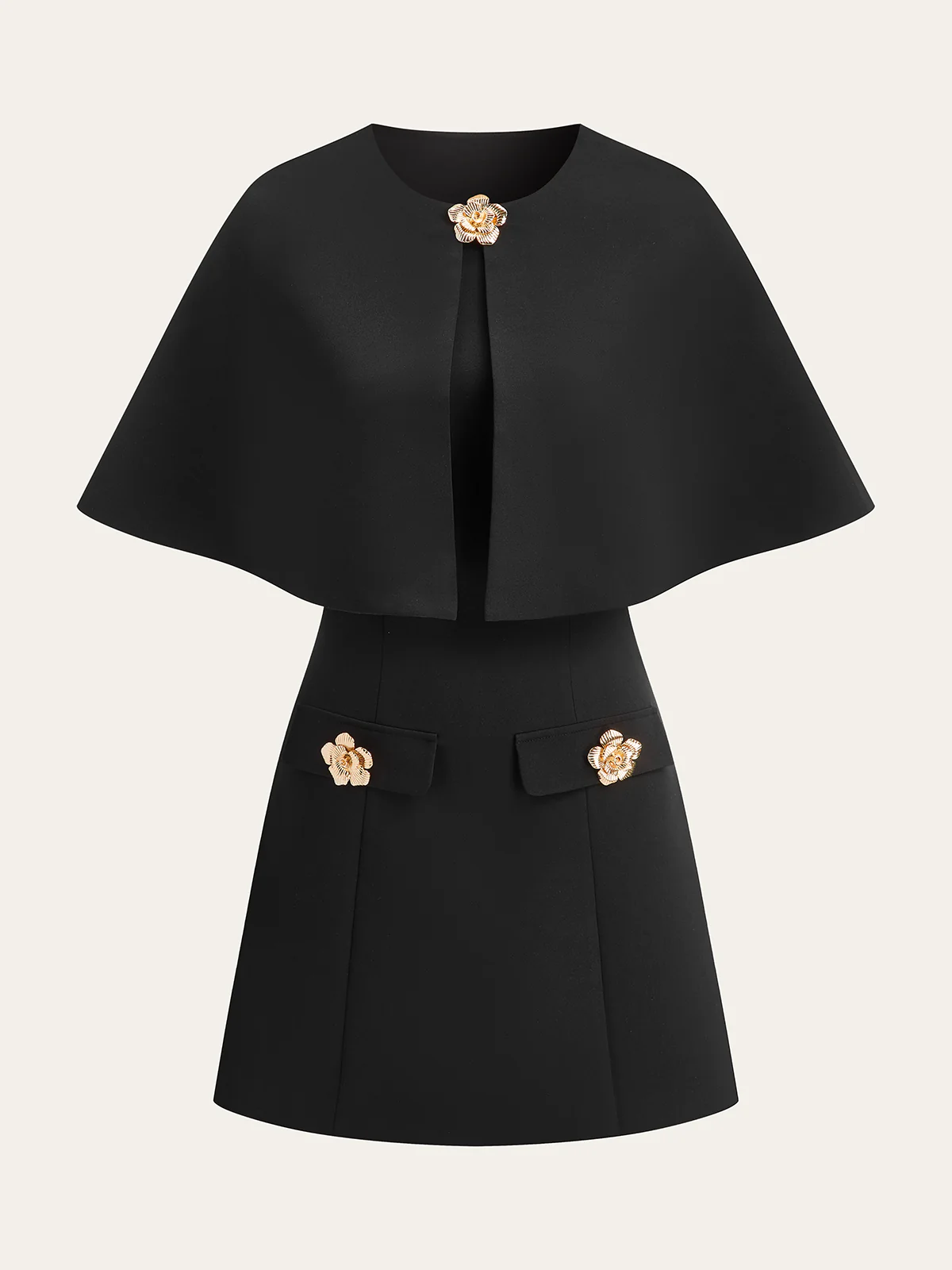 Detachable Cape Metal Floral Detail Dress Set