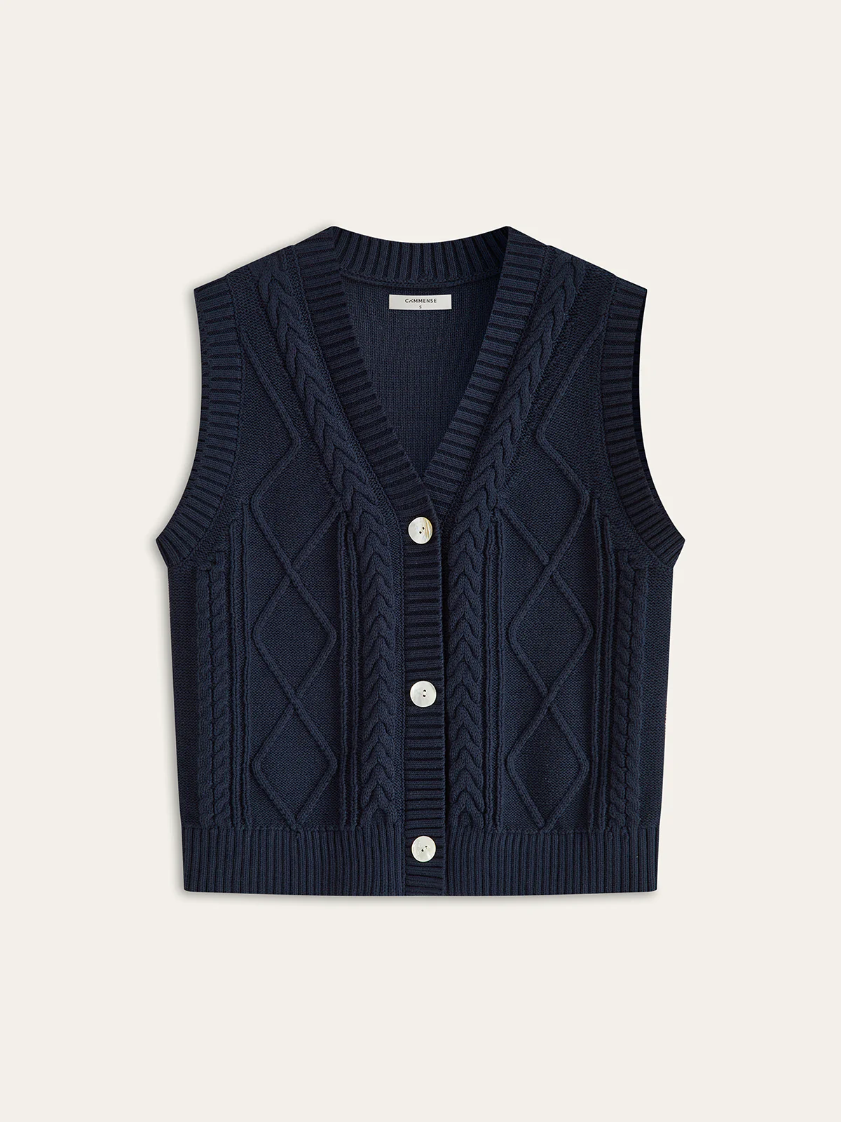 Cable-Knit Button V-Neck Vest