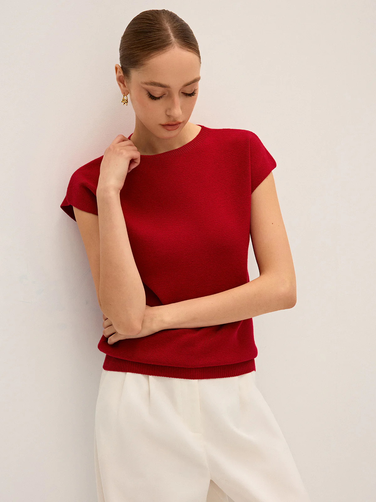 Wool-Blend Cap Sleeve Knit Top