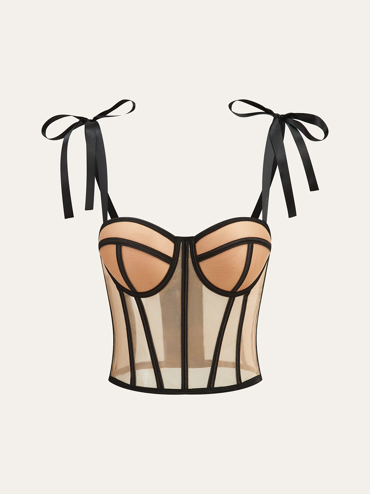 Sheer Mesh Bow-Tied Strap Corset Top