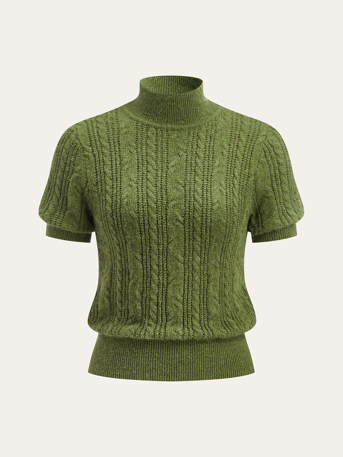 Cable-Knit Mock Neck Short-Sleeve Sweater Top