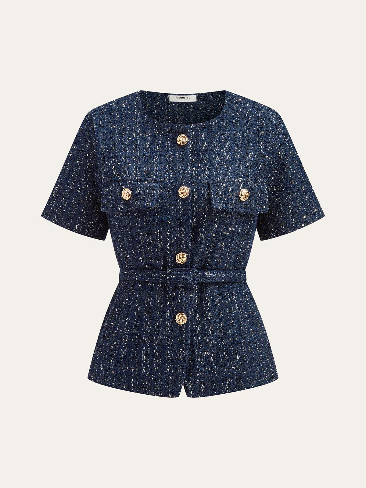 Semi-Sheer Chiffon Ruffle Shirt with Stud Embellishments