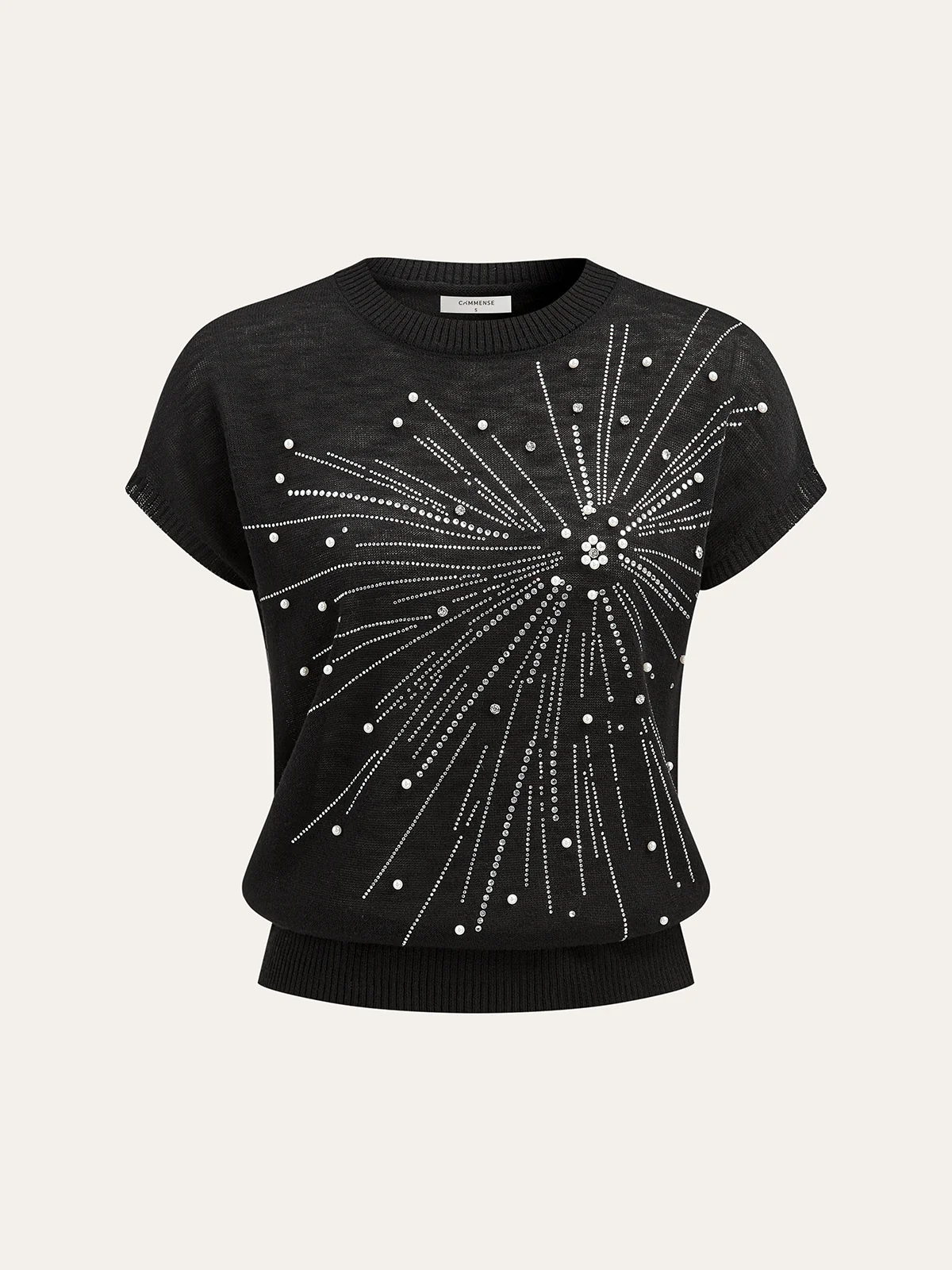 Rhinestone & Pearl Firework Pattern Knit Top