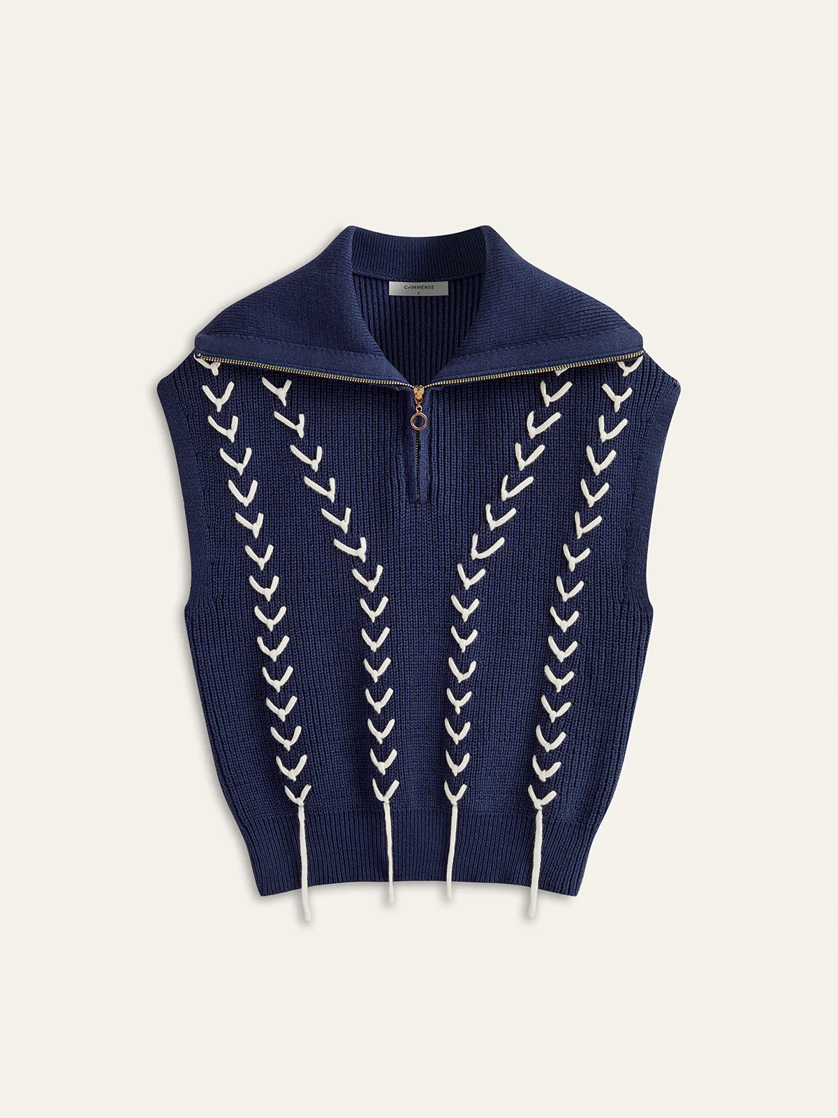 Zip Collared Knit Vest with Stitch Detailing