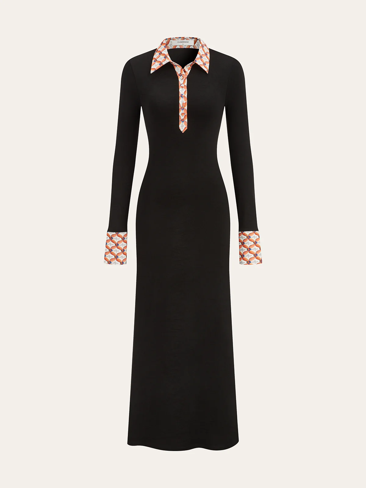 Print Trim Shirt Collar Maxi Dress