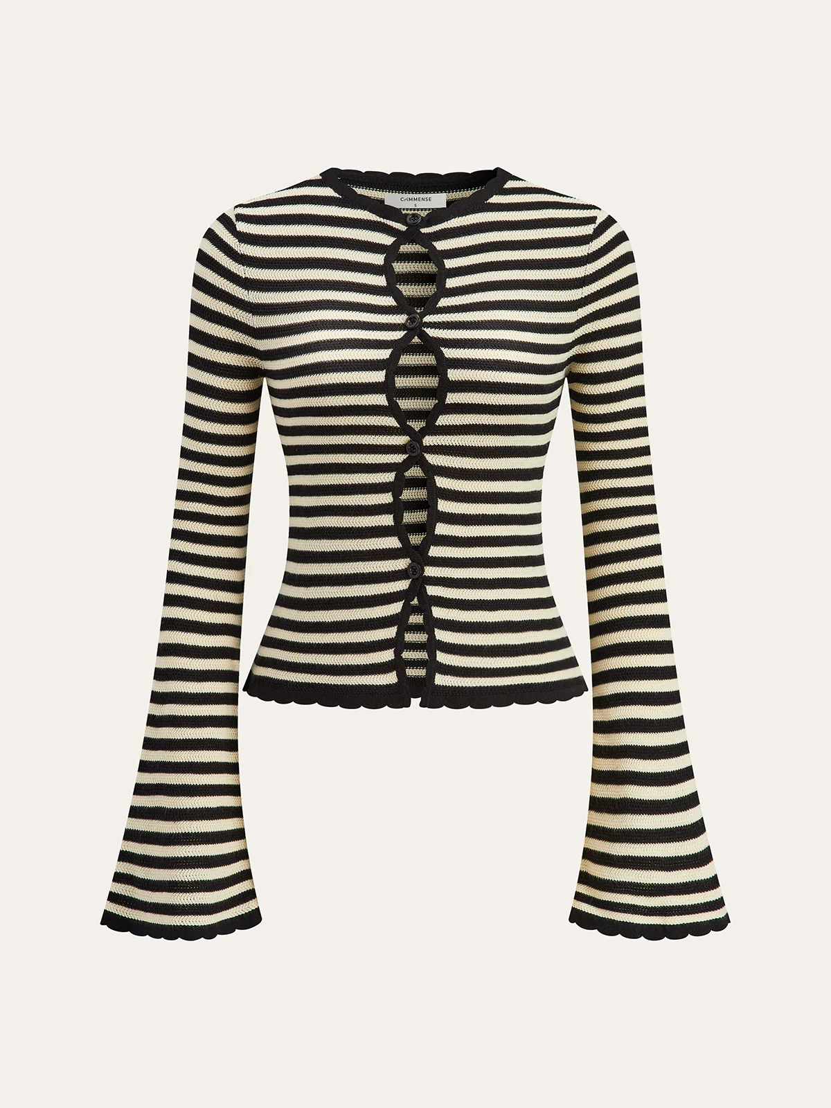 Striped Cut-Out Flare Sleeve Knit Top