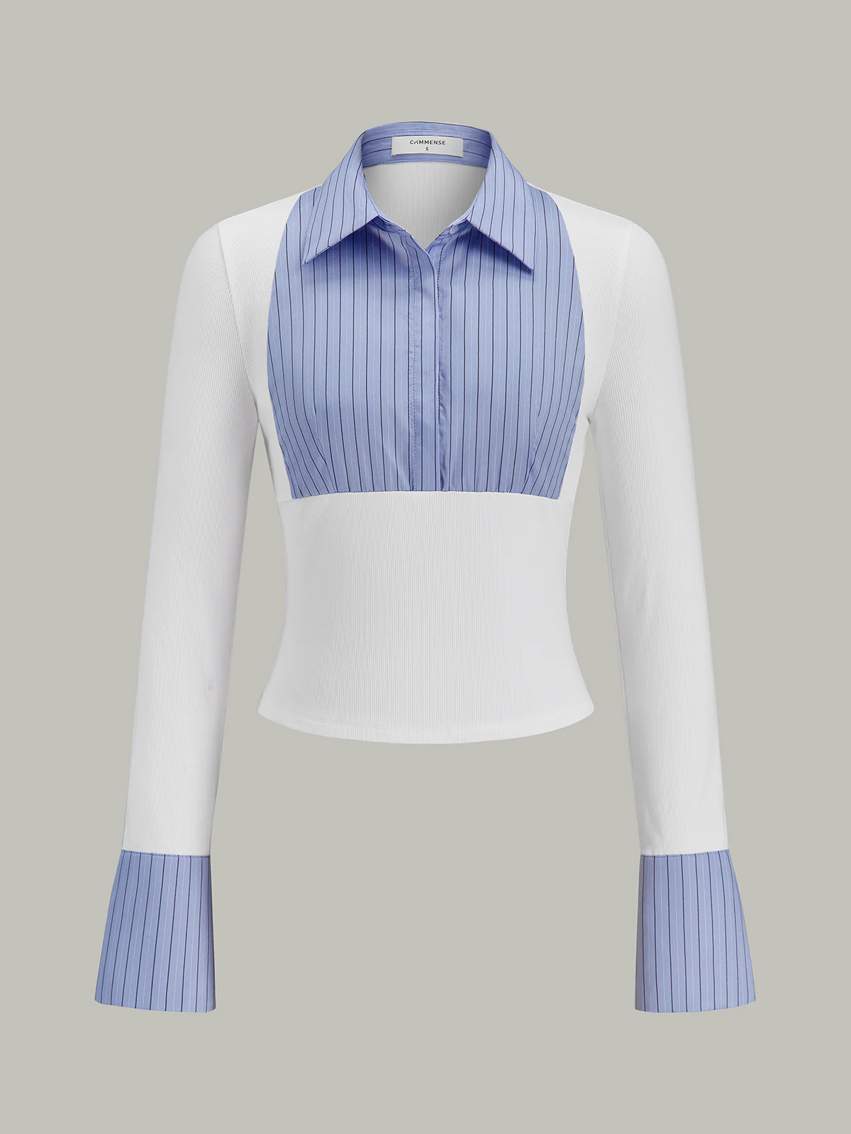 Flared Cuff Striped Paneled Shirt