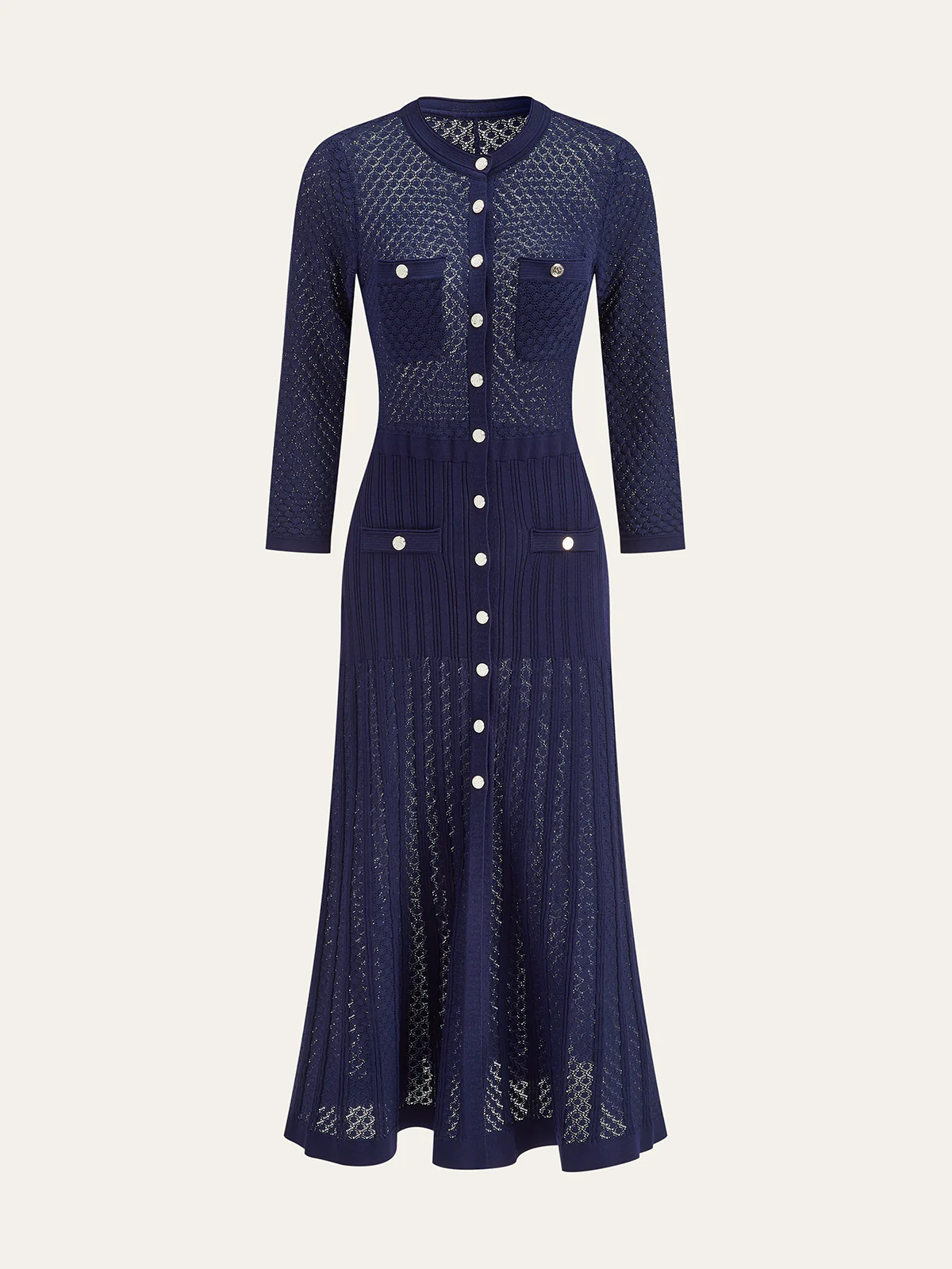Button-Front Sheer-Knit Maxi Dress