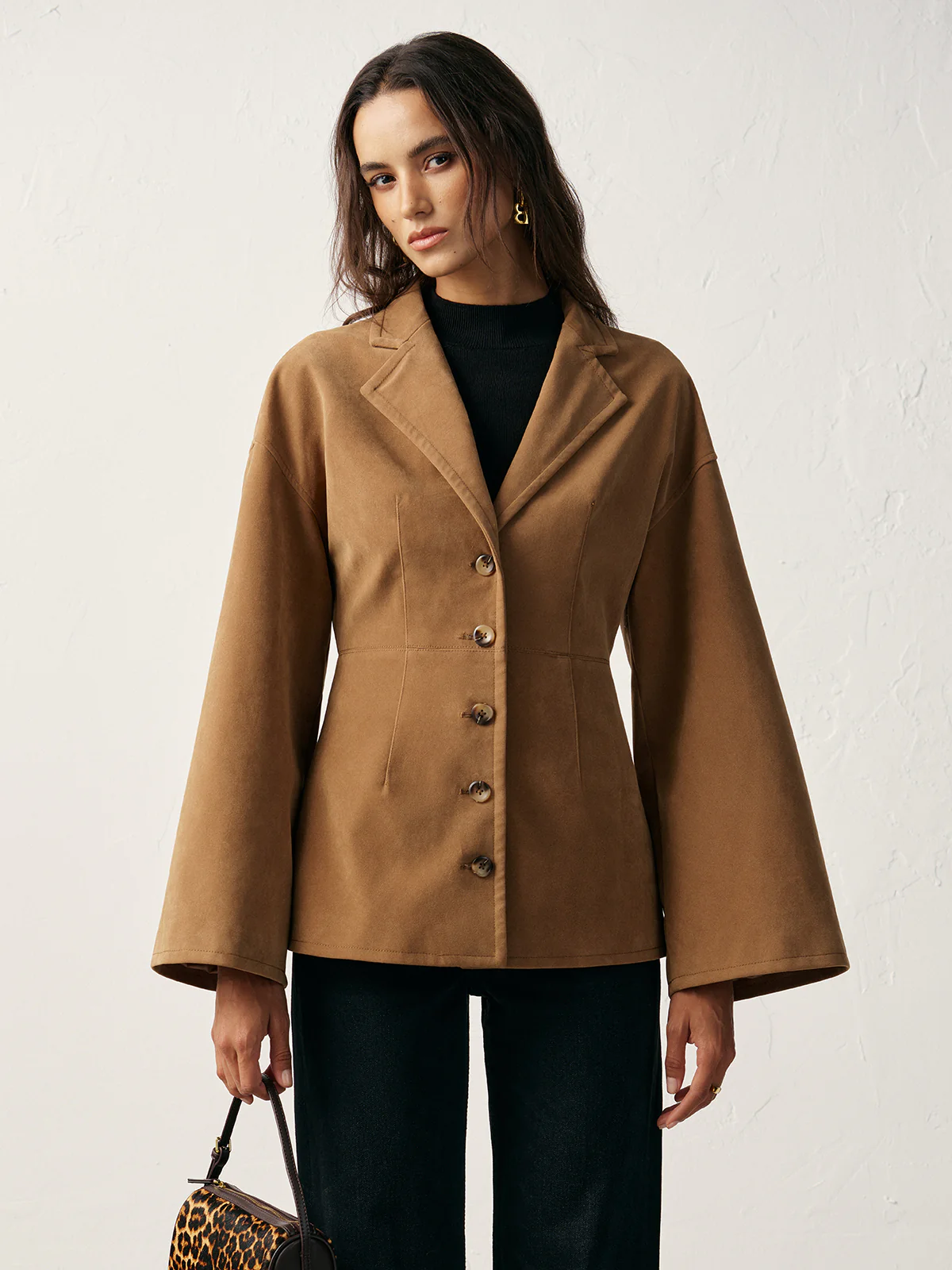 Flared Sleeve Suede Effect Blazer