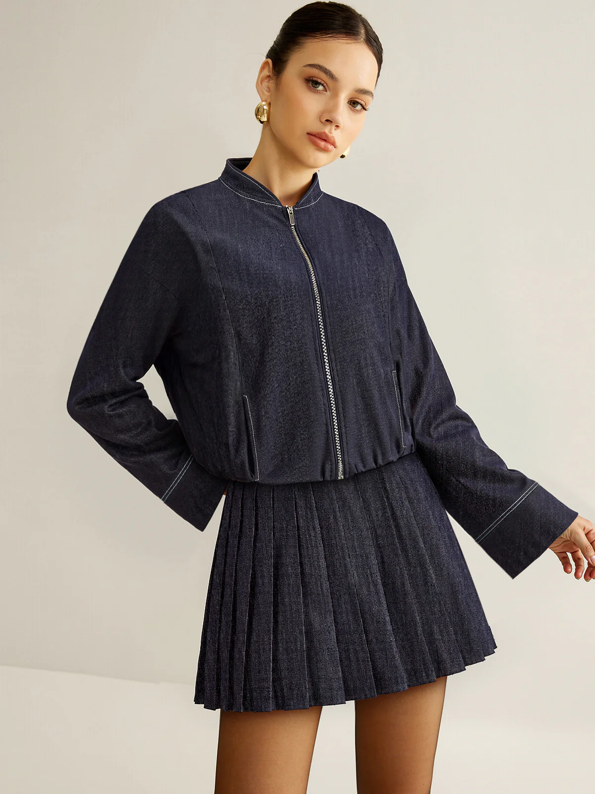 Zip Front Jacket and Pleated Mini Skirt Set
