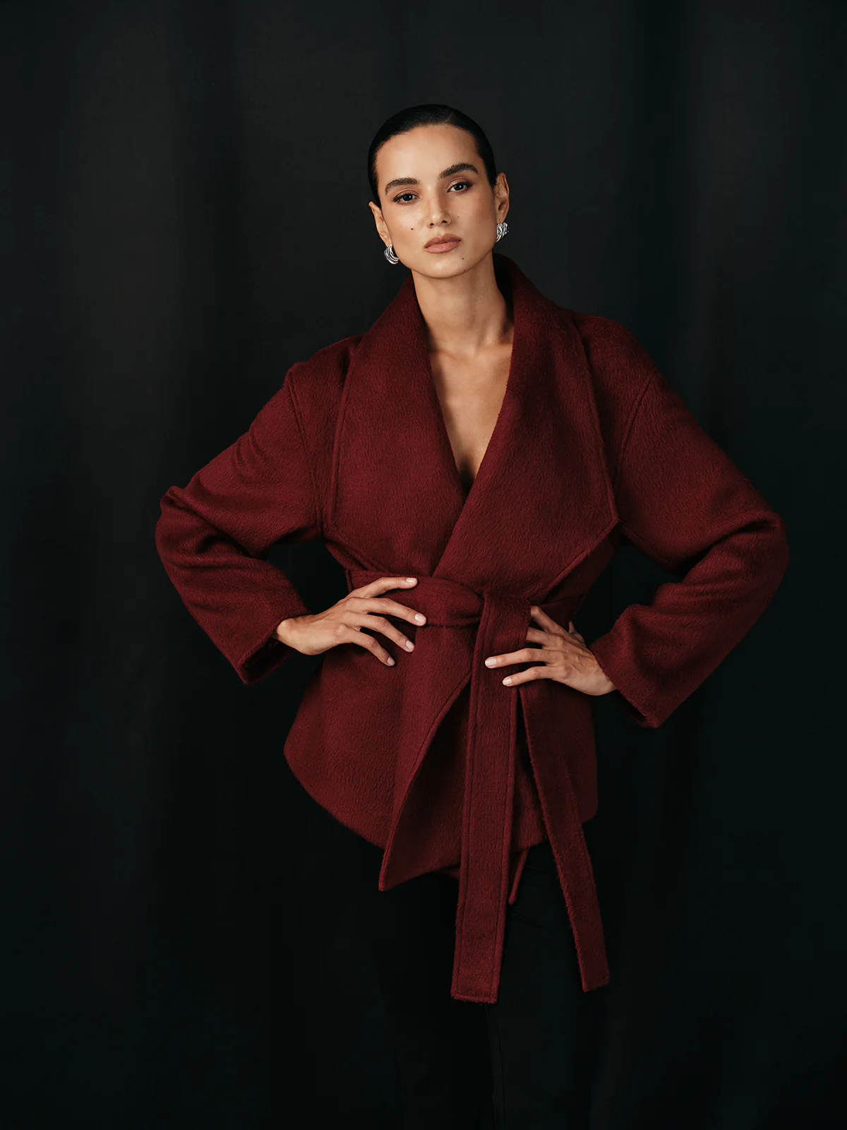 Flared Cuff Wool Blend Off-Shoulder Knit Top