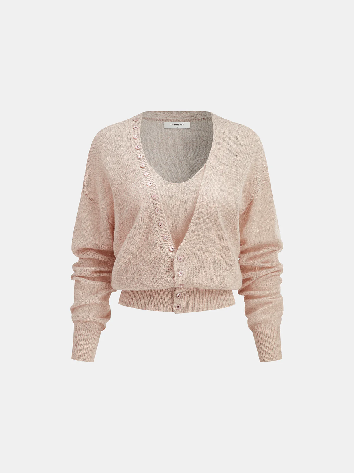 Asymmetric Placket Stand Collar Long Sleeve Blouse
