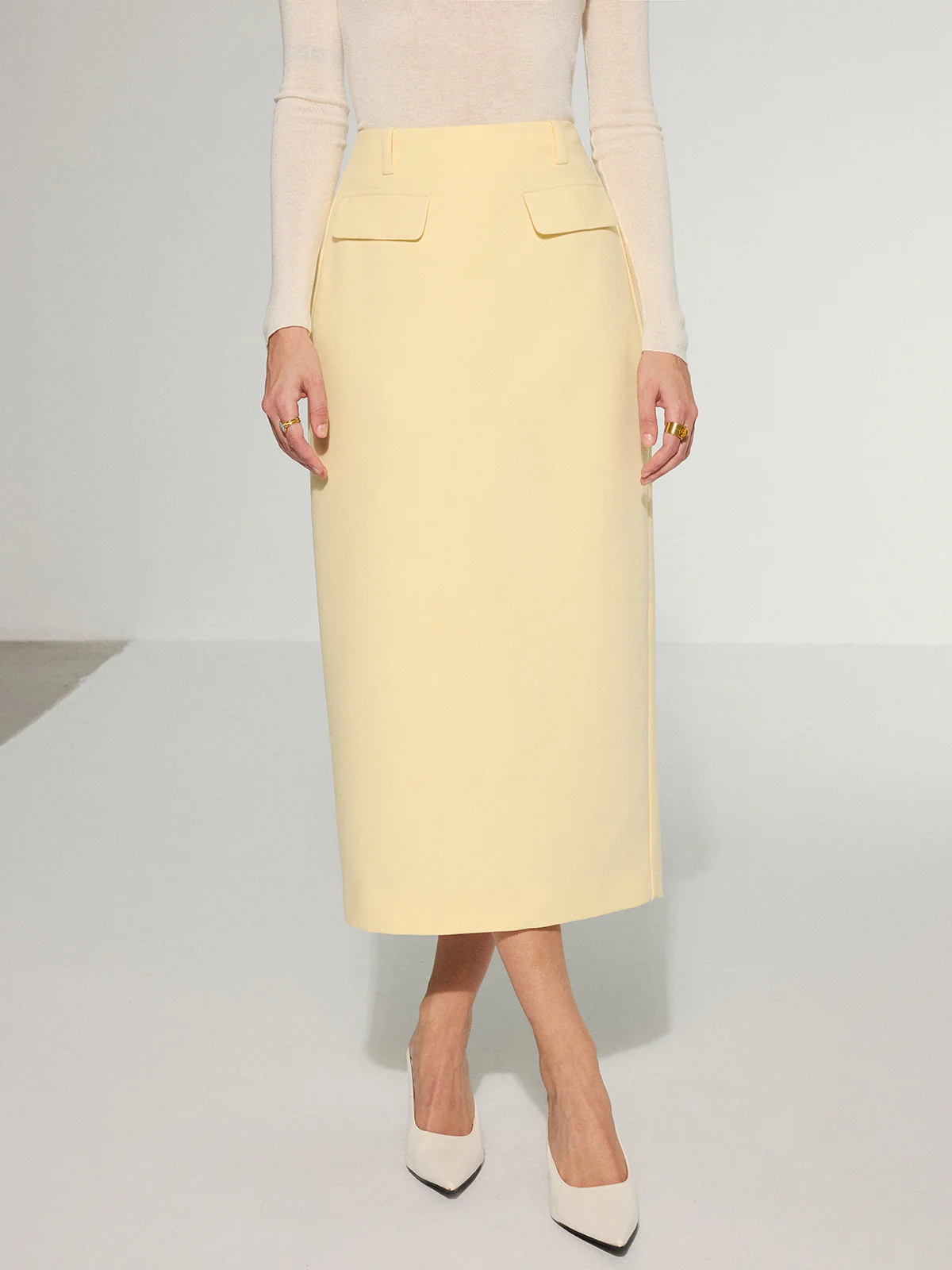High-Waisted Double-Button Straight-Leg Denim Pants