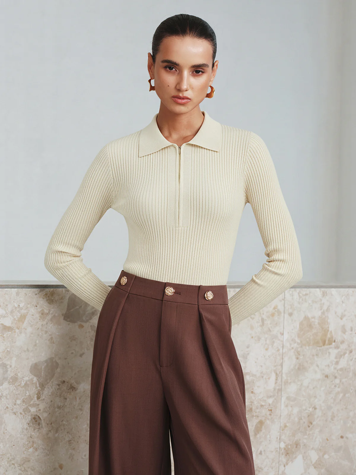 Metal Detail Asymmetric Cut-Out Wool Blend Top
