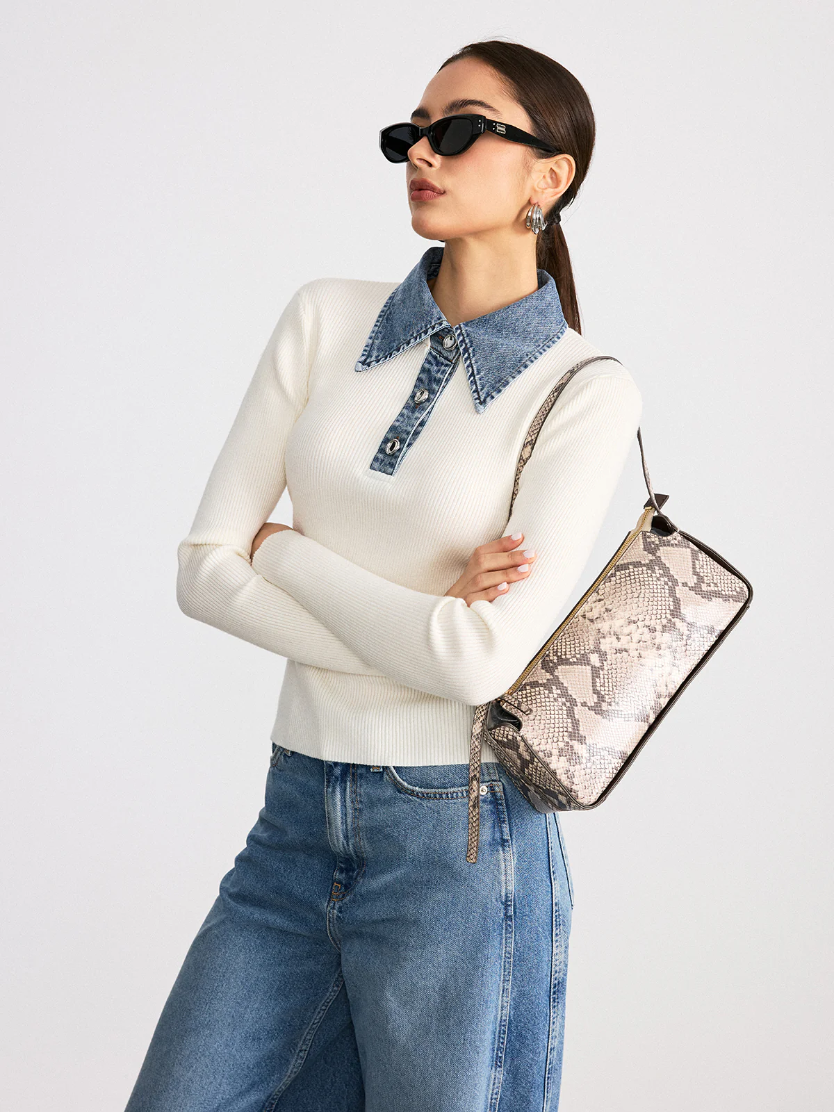 Denim Collar Wool Blend Knit Top