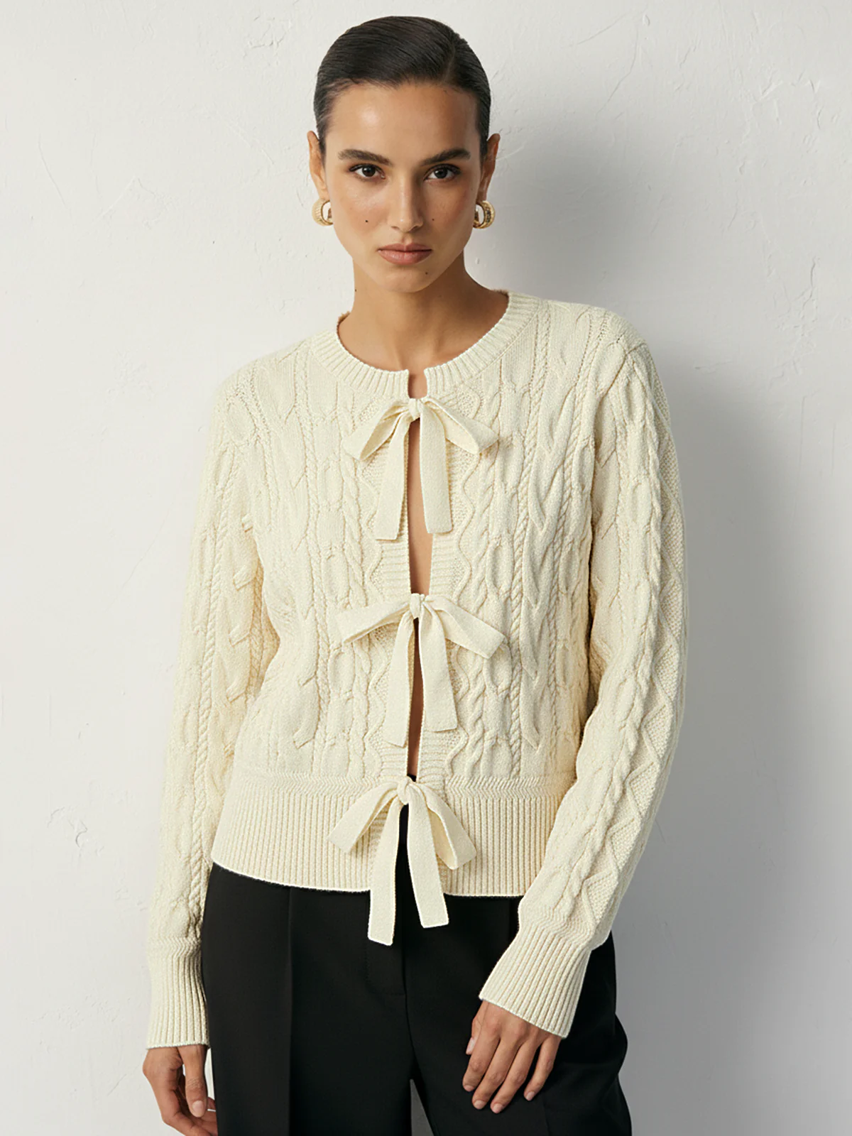 Cable-Knit V-Neck Cardigan and Pleated Skirt Set