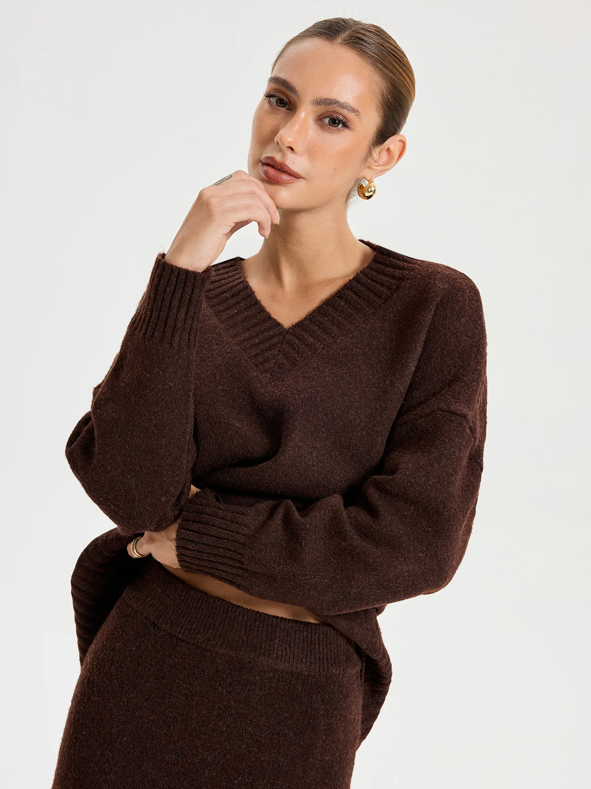 V-neck Knitted Sweater Co-ords